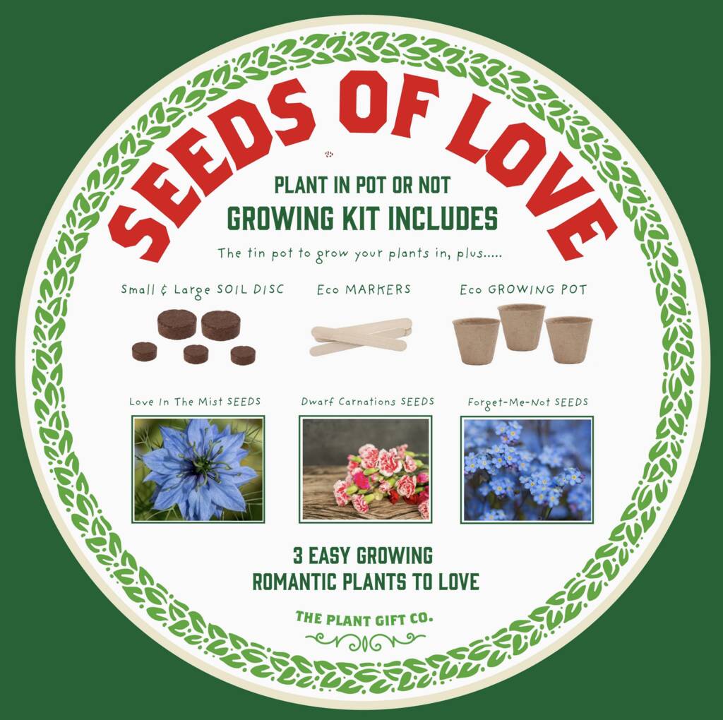 A fantastic gift- Eco Friendly - This 1Litre Gardening Kit contains the essentials for planting the proverbial seeds of love! BRILLIANT GARDENING GIFT IDEA - With our easy-to-understand step-by-step instructions inside every pot, this perfect gift is an ideal gift for gardening enthusiasts as well as first-time growers. The pot itself is fully recyclable after use and all inside contents are biodegradable. OUTSTANDING VALUE FOR MONEY - What's in the Kit? - 3 Packets of flowering seeds. Love in the Mist (Nigella Damascena Forget me Not ( Myosotis Aplestris) Carnations (Dianthus Caryophyllus) - Instruction Booklet - 3 wooden plant markers - 3 bio pots - 2 soil discs or 1 XLarge disc - 3 regular soil discs - 1 eco tin 1Litre planter We regularly batch-test them to ensure excellent quality, speedy growth, and happy-looking sproutings.