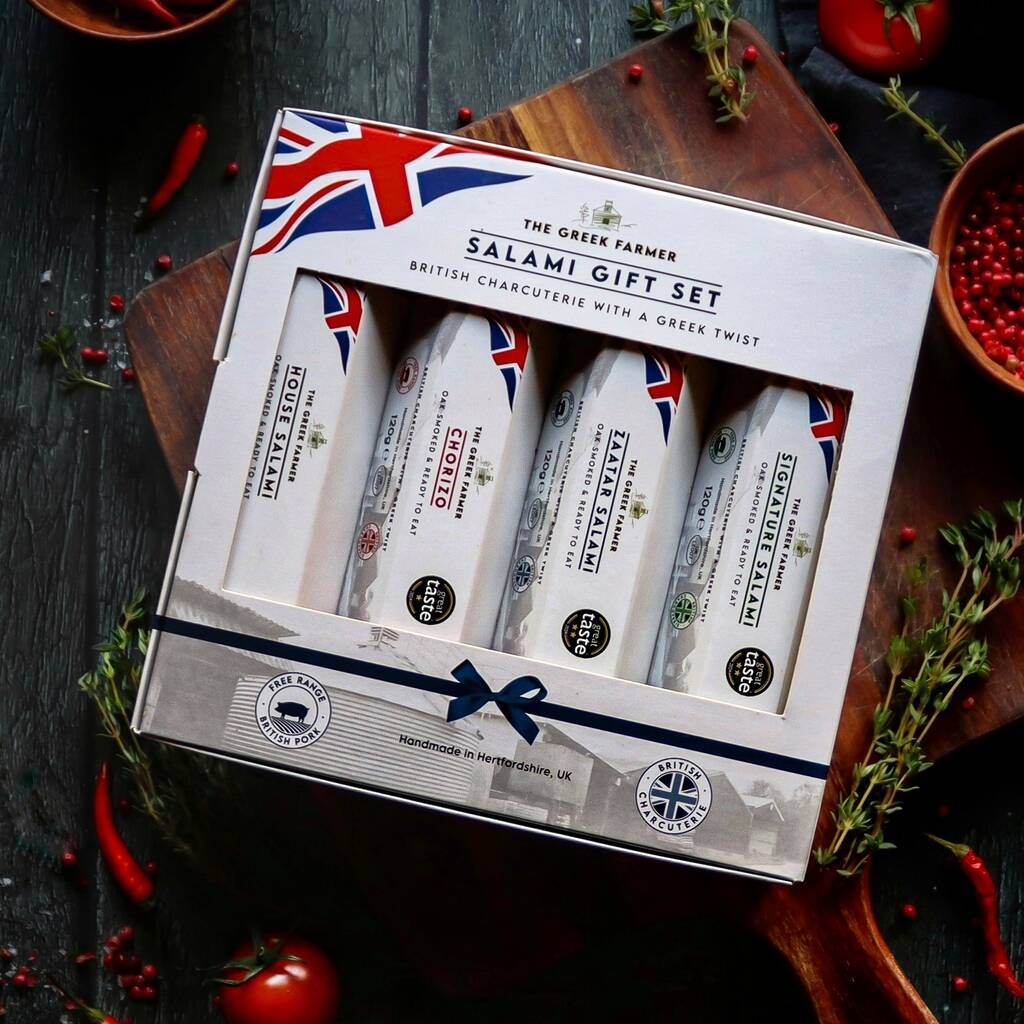 Packed with 480g of salami including our house salami, 2* Great Taste 2024 award winning zaatar salami, 2* Great Taste 2024 award winning signature salami, and of course our mouthwatering 1* Great Taste 2024 award winning Greek style chorizo, this set is perfect for anyone looking for artisan British cured meats.
