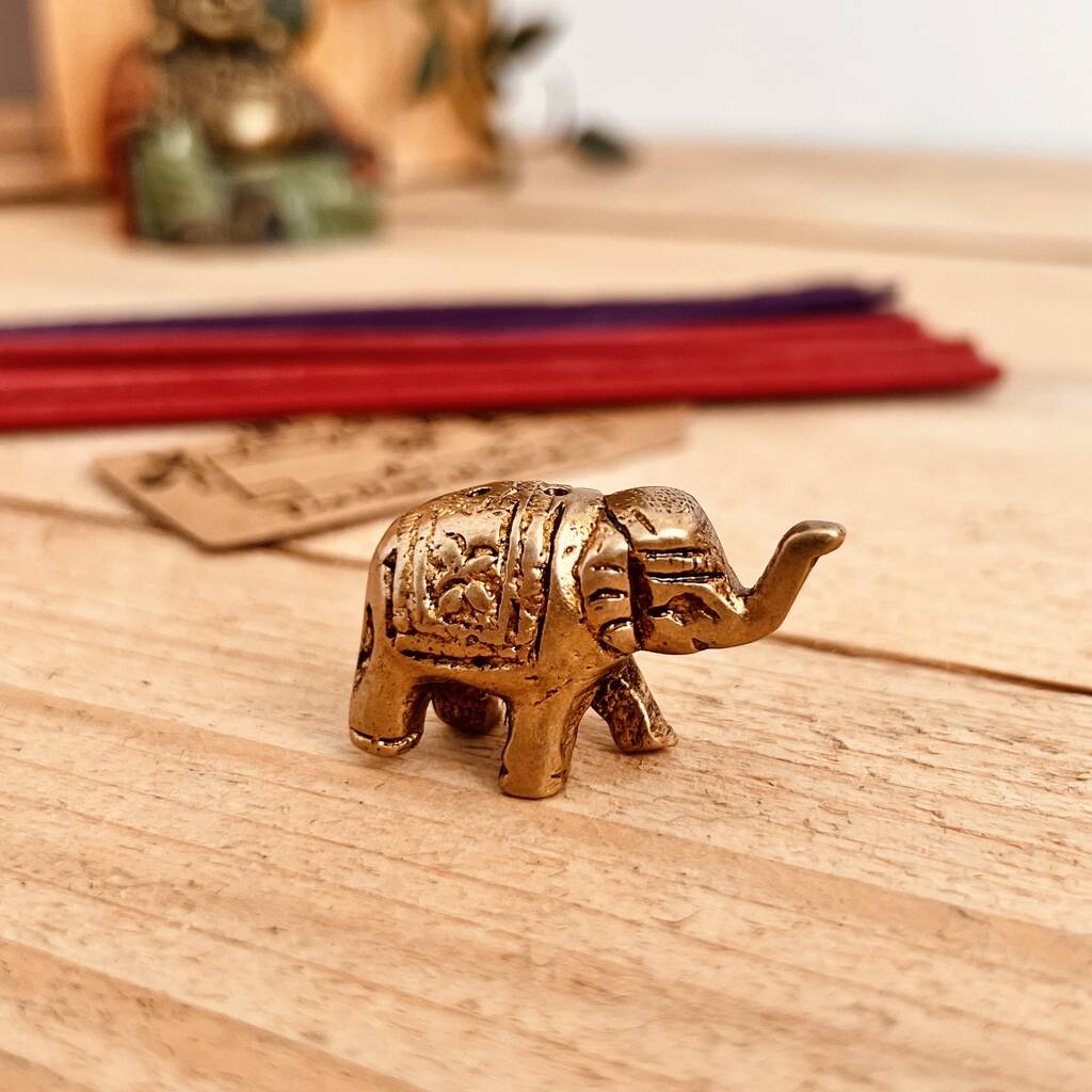 A beautifully handmade mini brass elephant incense holder, crafted from recycled brass and designed to bring a sense of calm and mindfulness to any space.Handcrafted from recycled brass, this mini elephant incense stick holder is a thoughtful piece designed for moments of calm and mindful ritual. Each holder is individually made using traditional fair-trade techniques, giving it a softly aged finish and unique character.