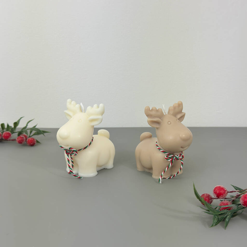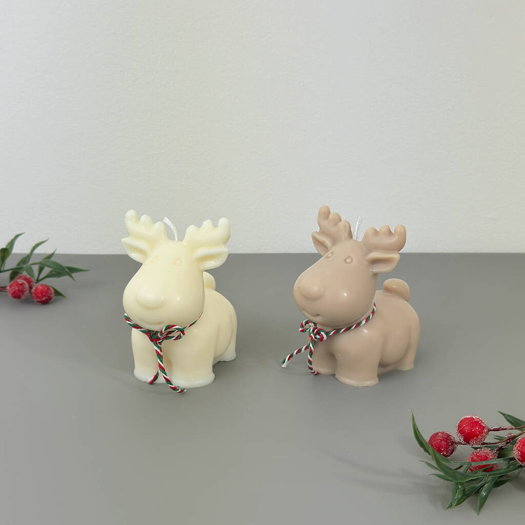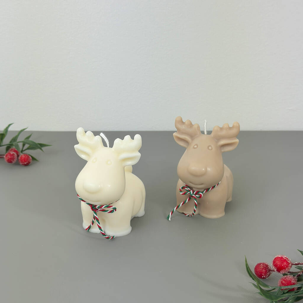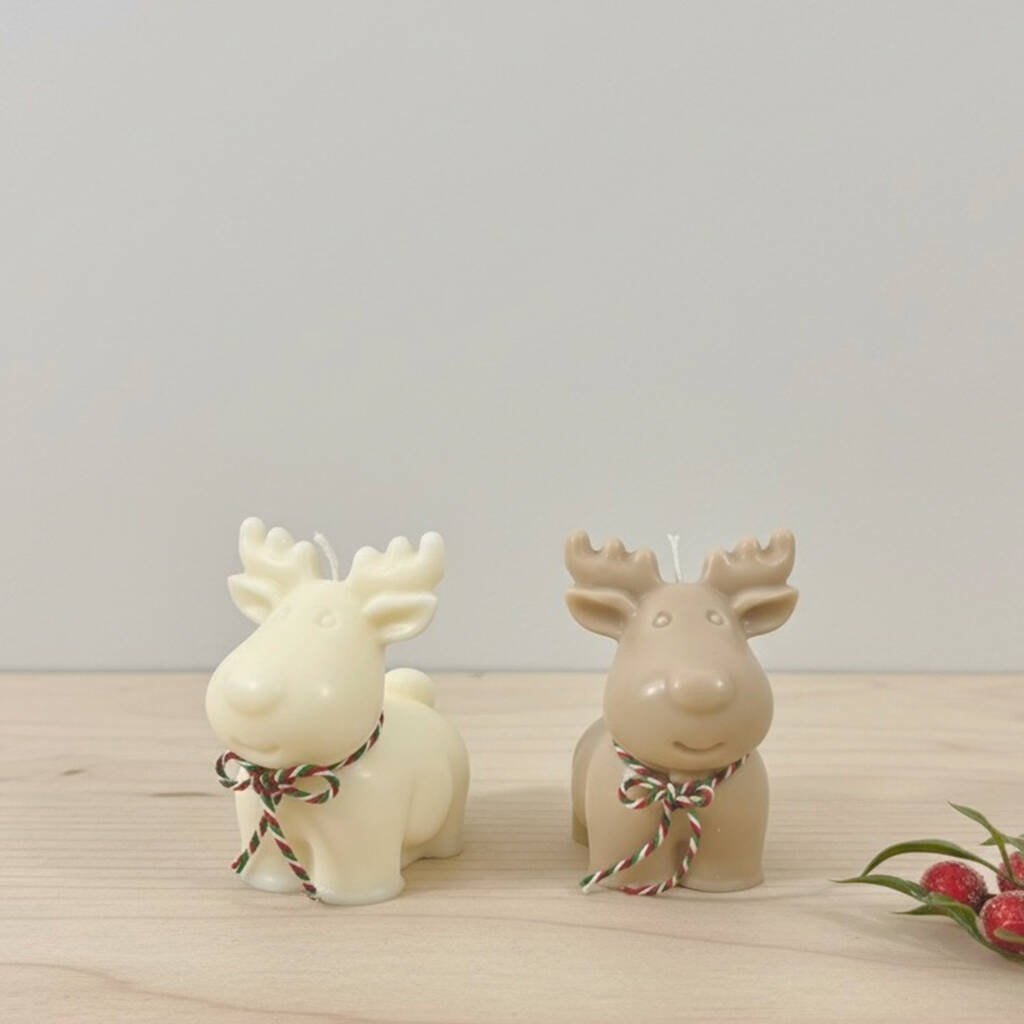 Our adorable reindeer shaped candles are handcrafted to capture the charm of the festive season. Each candle features a sweet cartoon-style reindeer with a smiling face and antlers; the perfect way to add a playful touch to your Christmas décor.