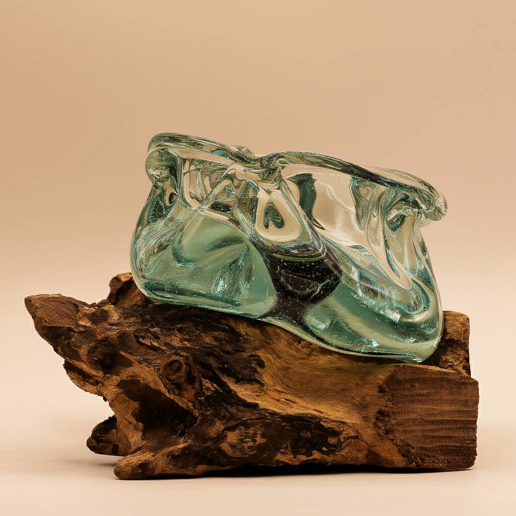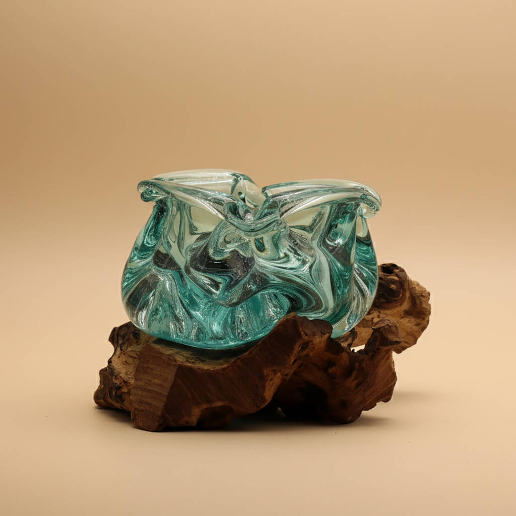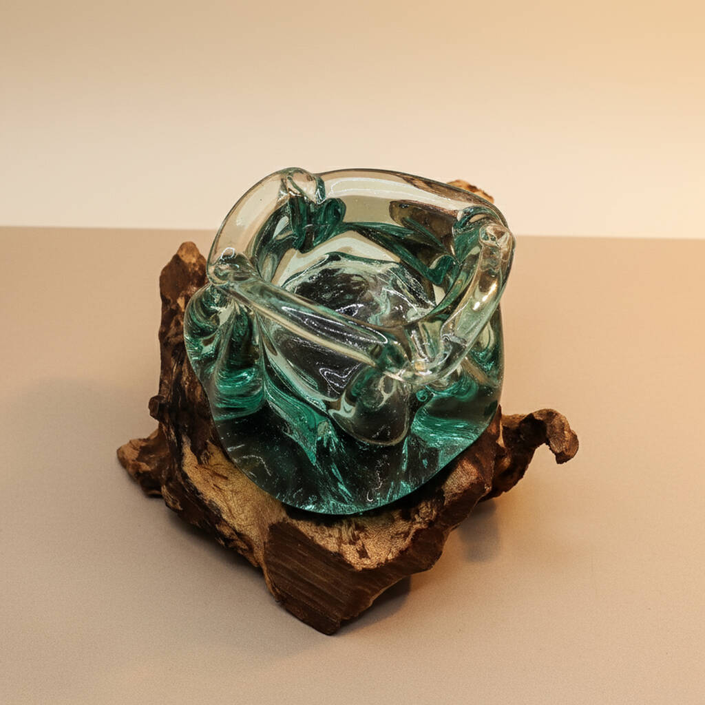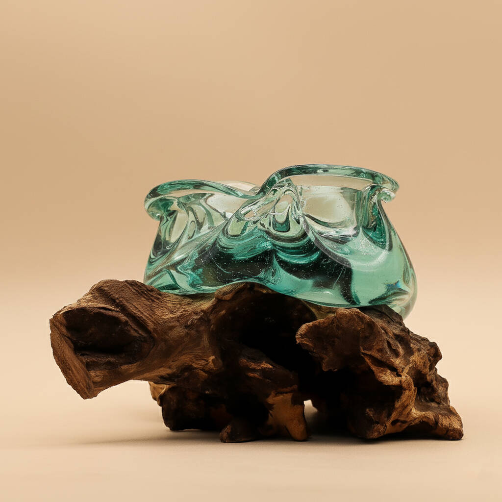 Due to variations in the wood sizes and shapes, the nature of melting the glass by hand and the fact this product is handmade by artisans, slight variations may occur in the shape of the glass, as well as colour and shape of the wood. There will also be small air bubbles present in the glass due to the melting process.