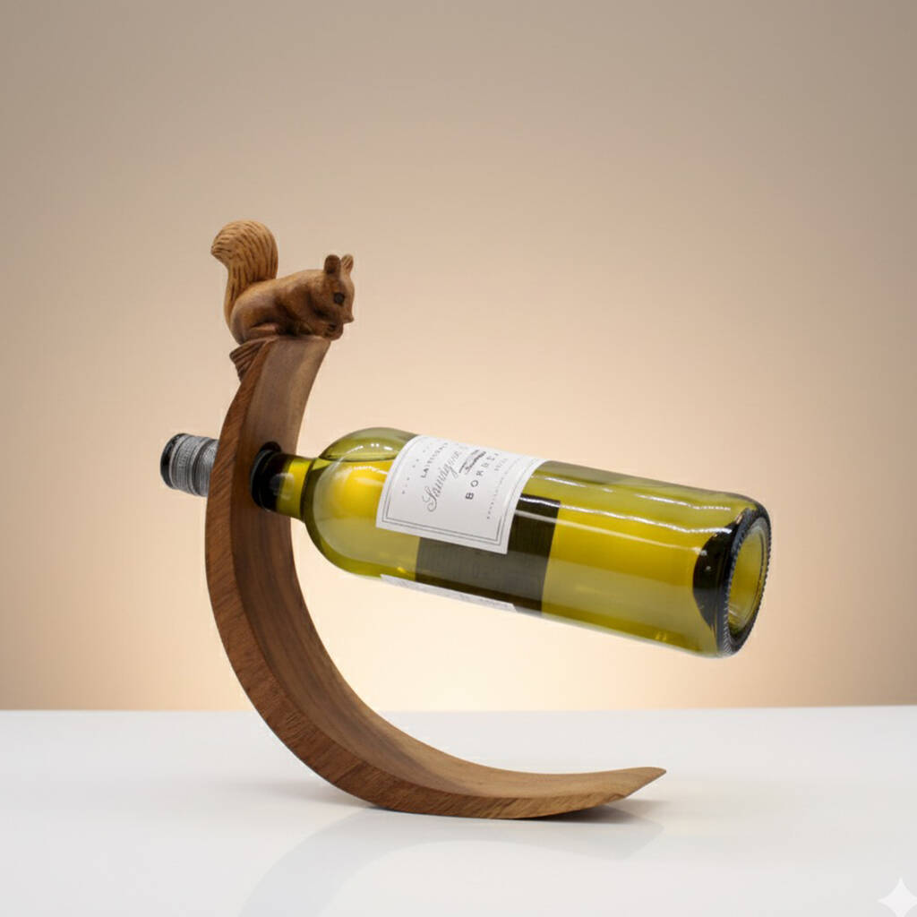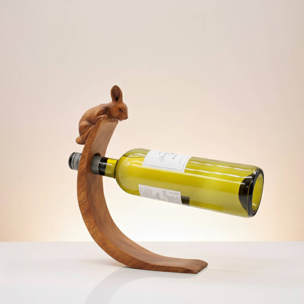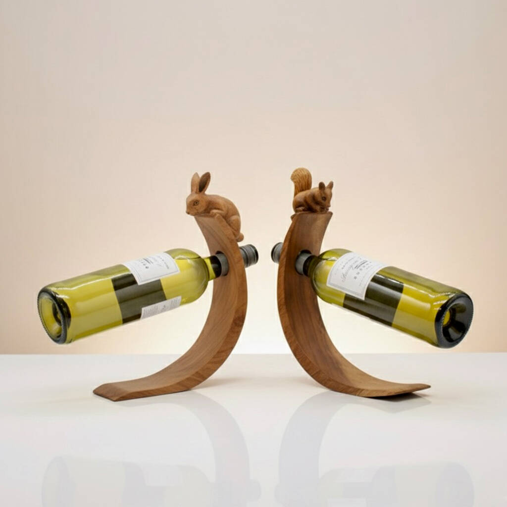 Rabbit And Squirrel Balancing Wooden Wine Bottle Holder