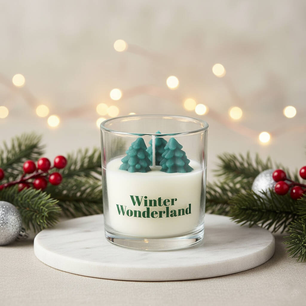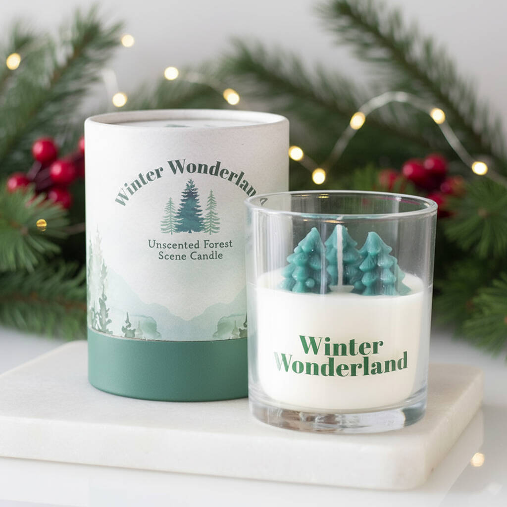 Our Christmas tree candle ia beautifully designed with a charming winter tree scene, perfect for bringing a festive atmosphere into your home.