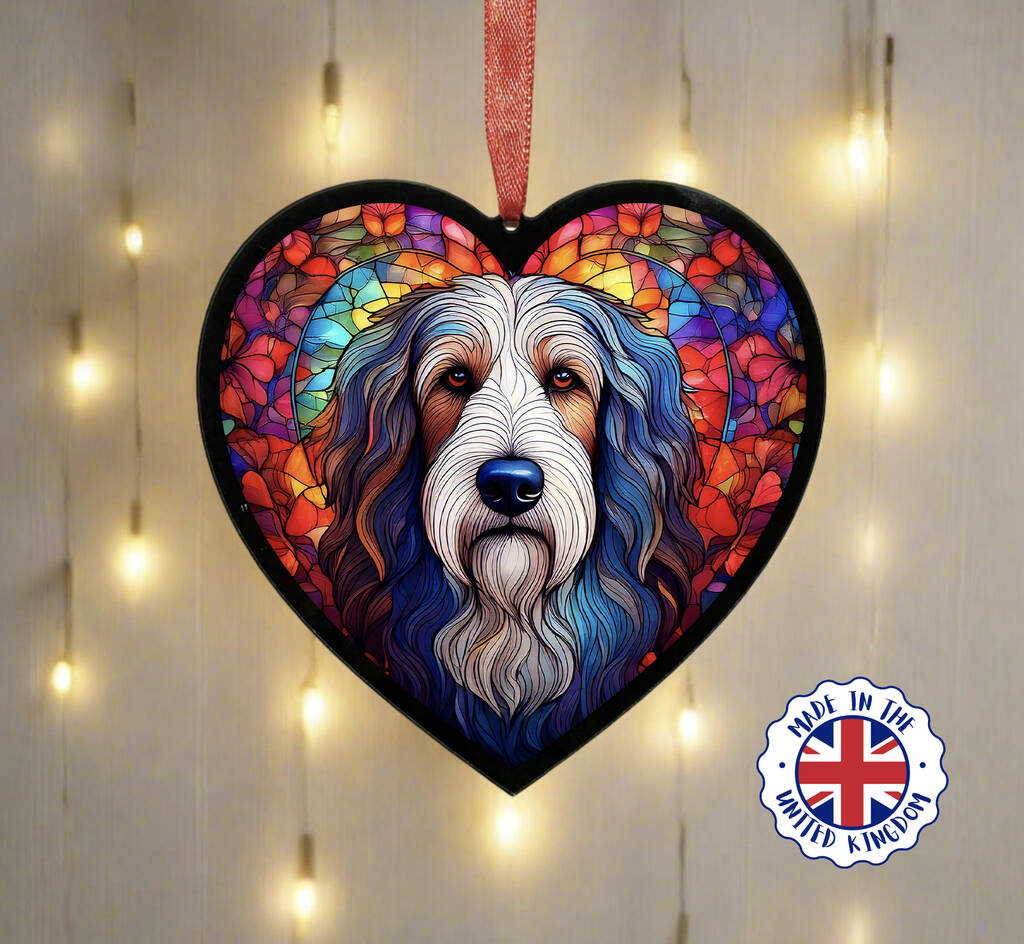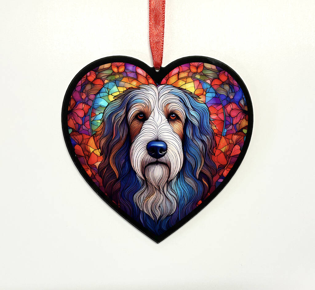 Bearded Collie Stained Glass Effect Heart Suncatcher