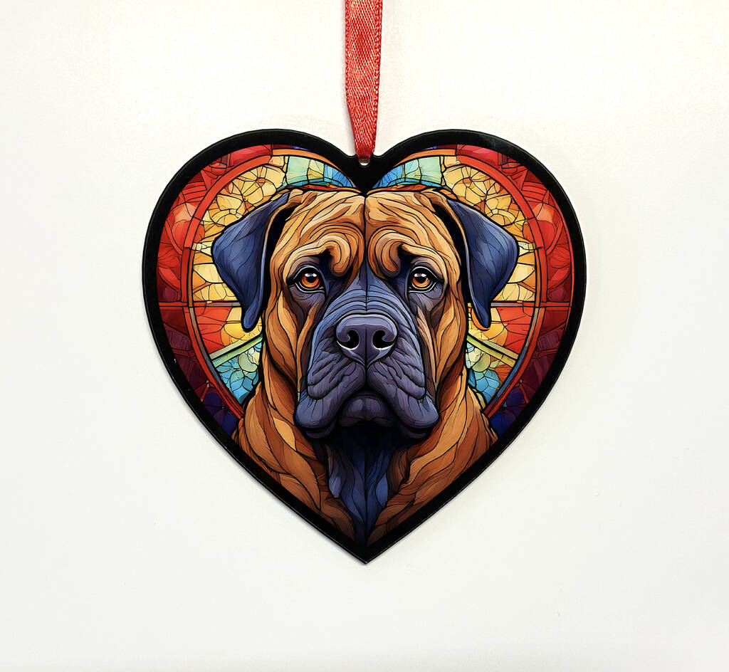 Bullmastiff Stained Glass Effect Heart Suncatcher