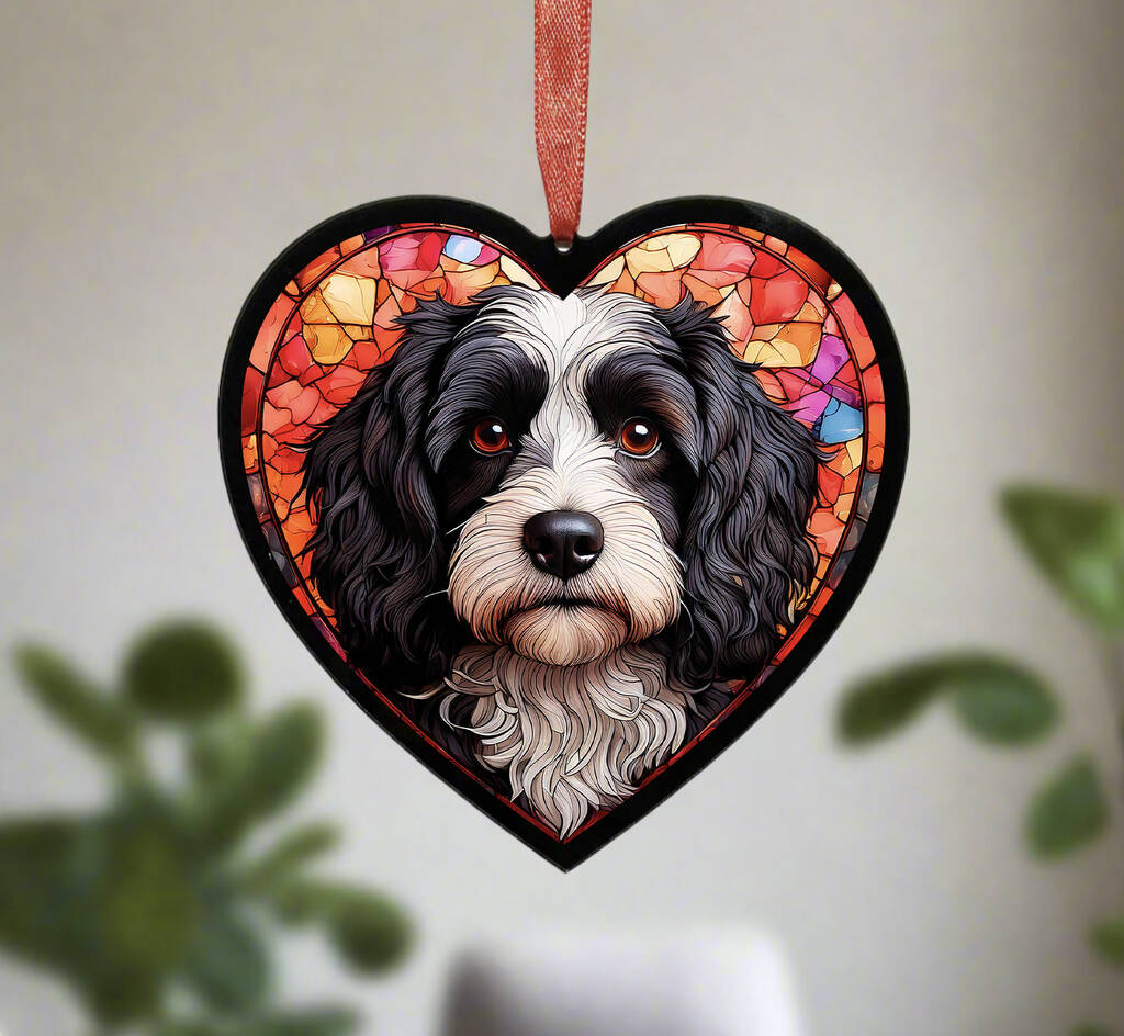 Cavapoo Stained Glass Effect Heart Suncatcher