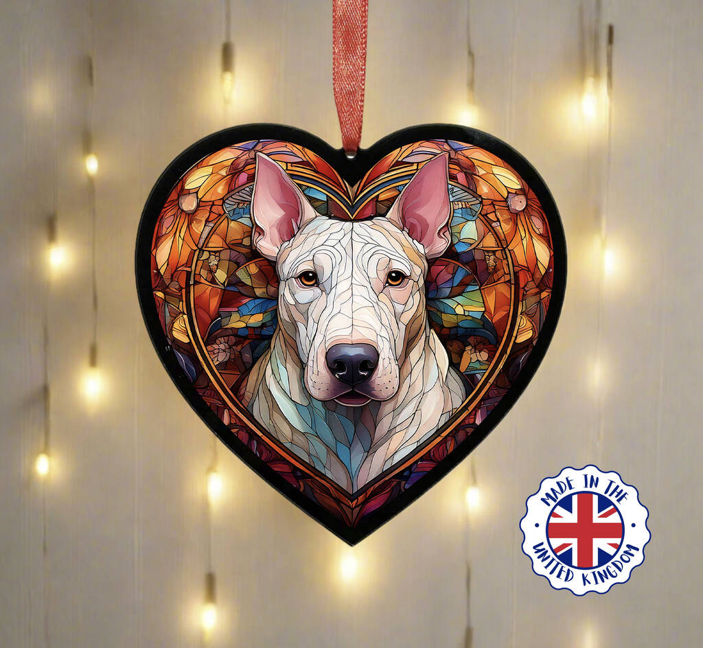 English Bull Terrier Stained Glass Effect Heart Suncatcher