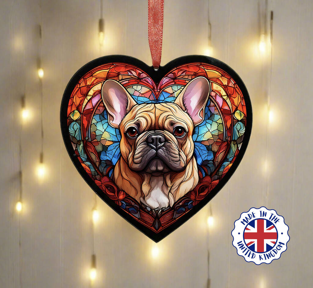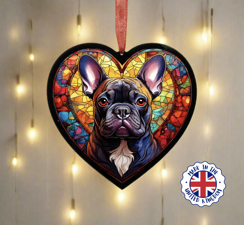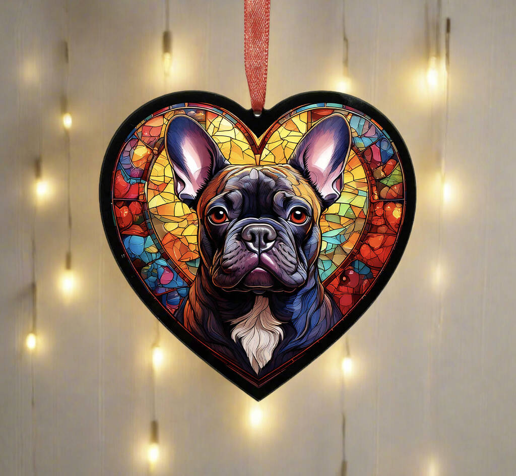 French Bulldog Stained Glass Effect Heart Suncatcher