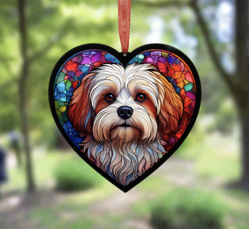 Lhasa Apso Stained Glass Effect Heart Suncatcher