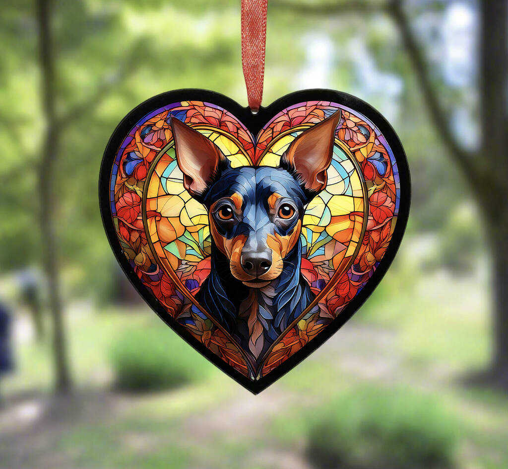 Miniature Pinscher Stained Glass Effect Heart Suncatcher