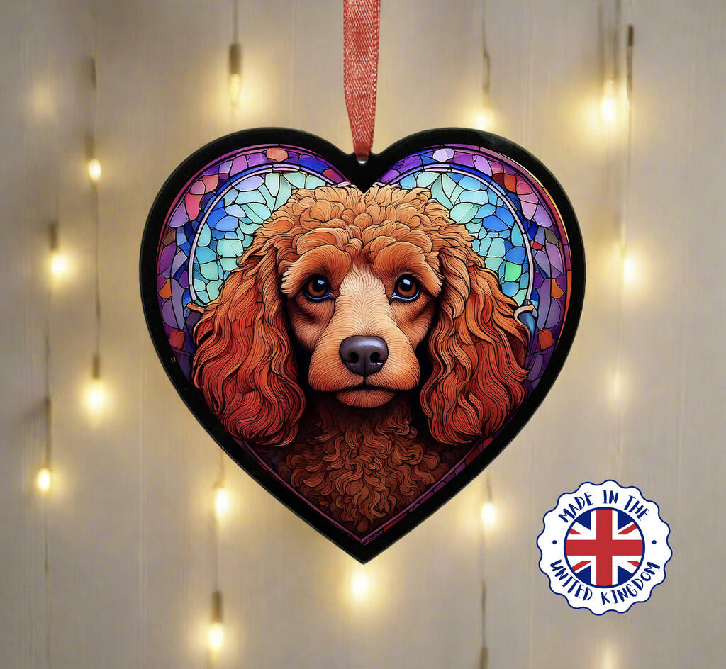 Poodle Stained Glass Effect Heart Suncatcher
