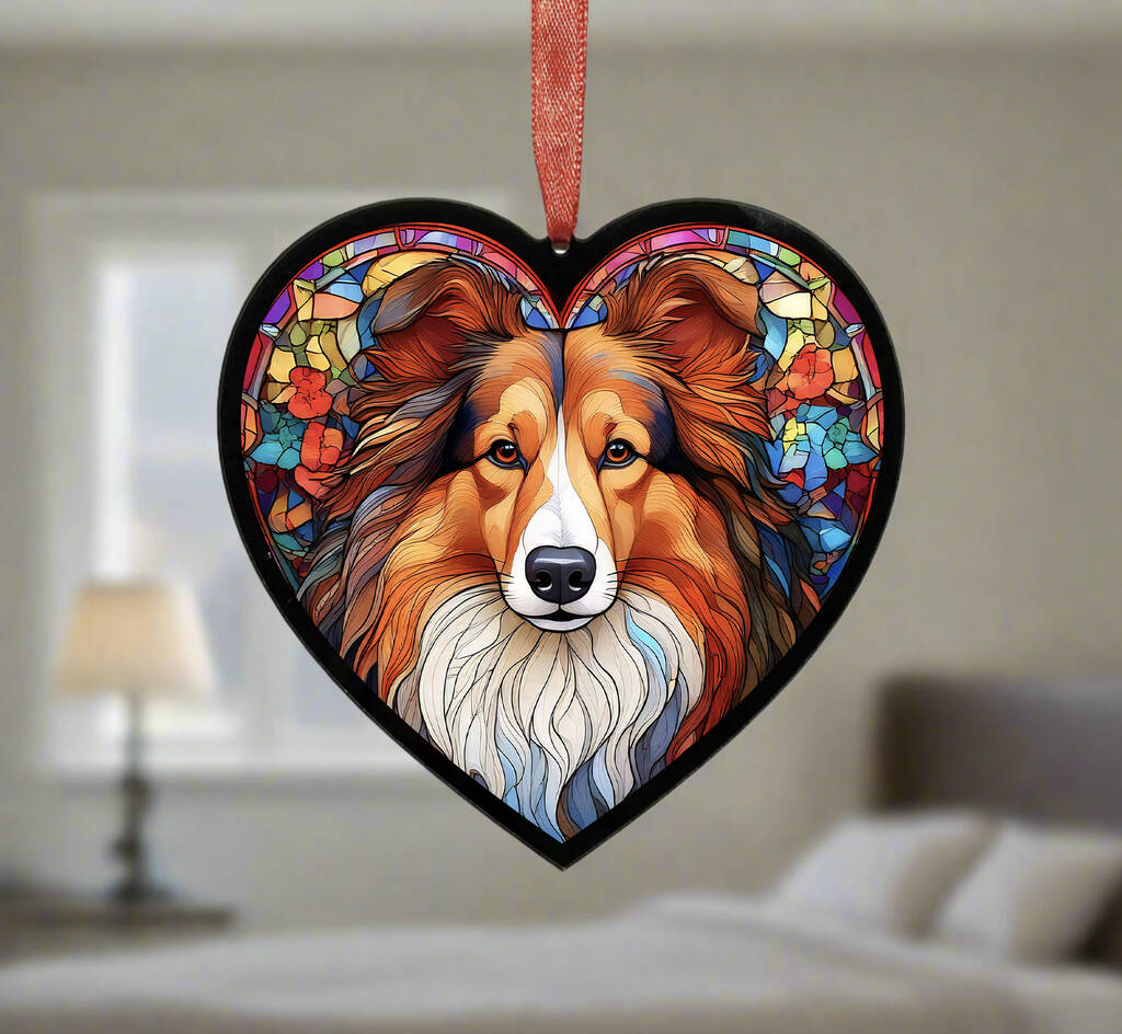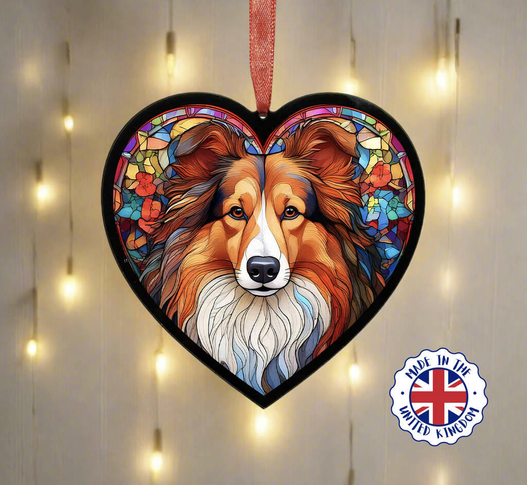 Rough Collie Stained Glass Effect Heart Suncatcher