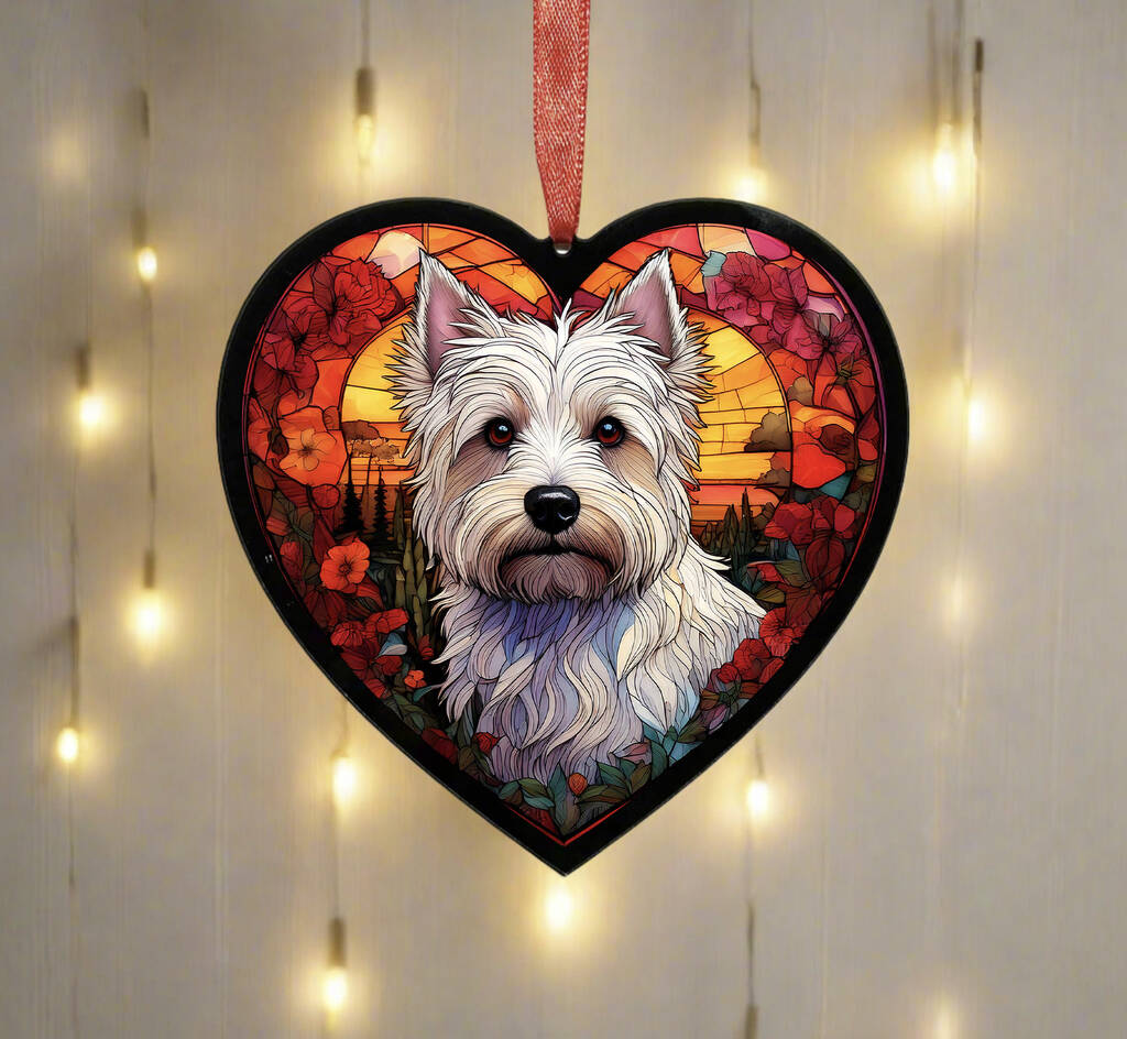 West Highland Terrier Stained Glass Effect Heart Suncatcher