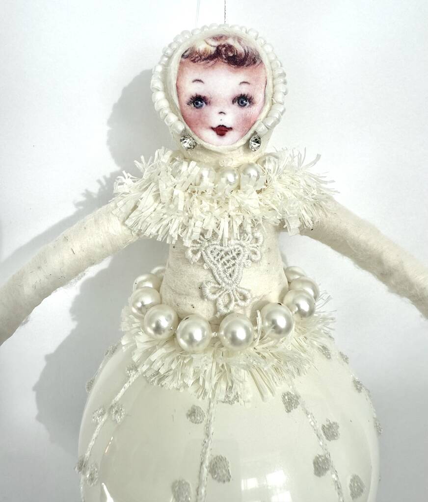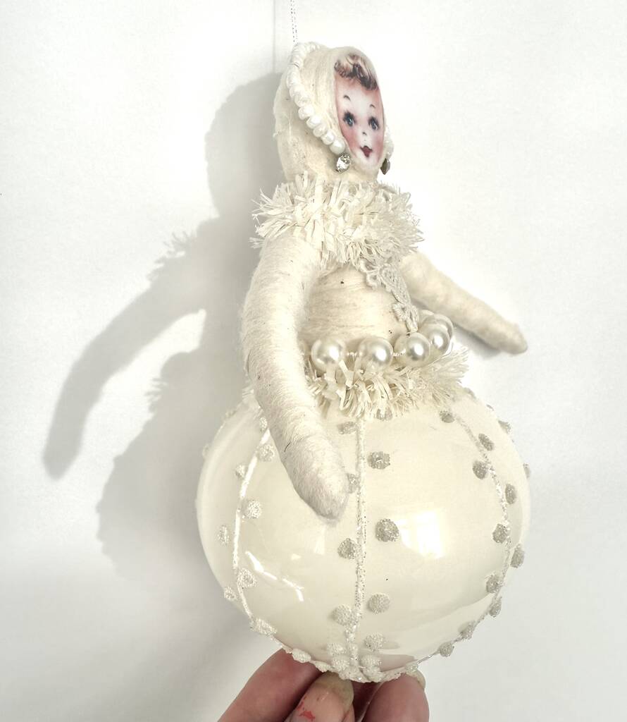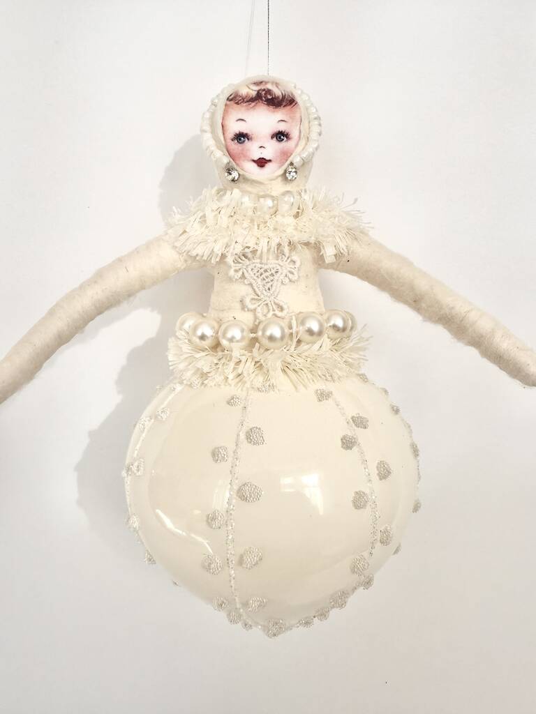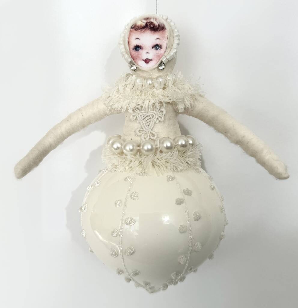 Spun Cotton And Glass Christmas Cream Bauble Girl
