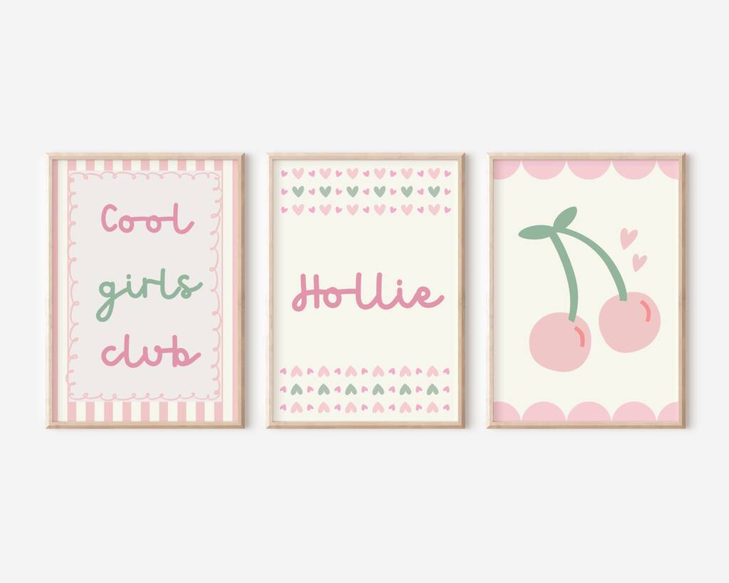 Personalised Girls Bedroom Print Set With Cute Cherry Design