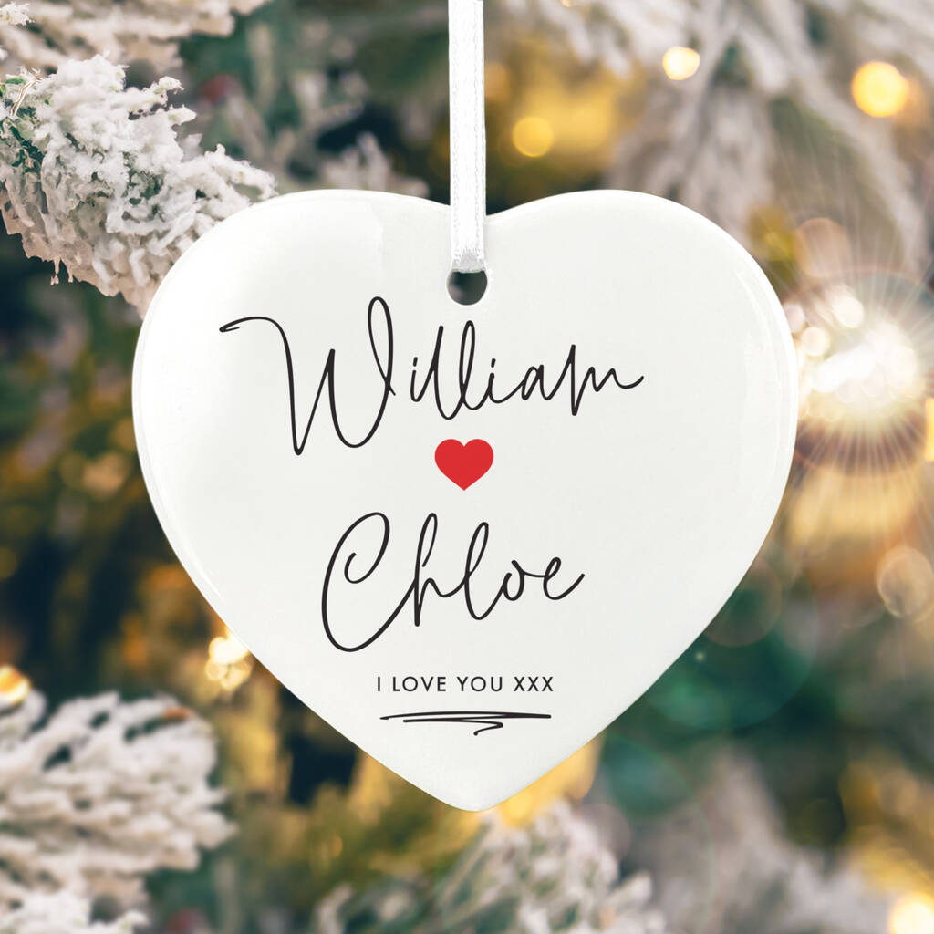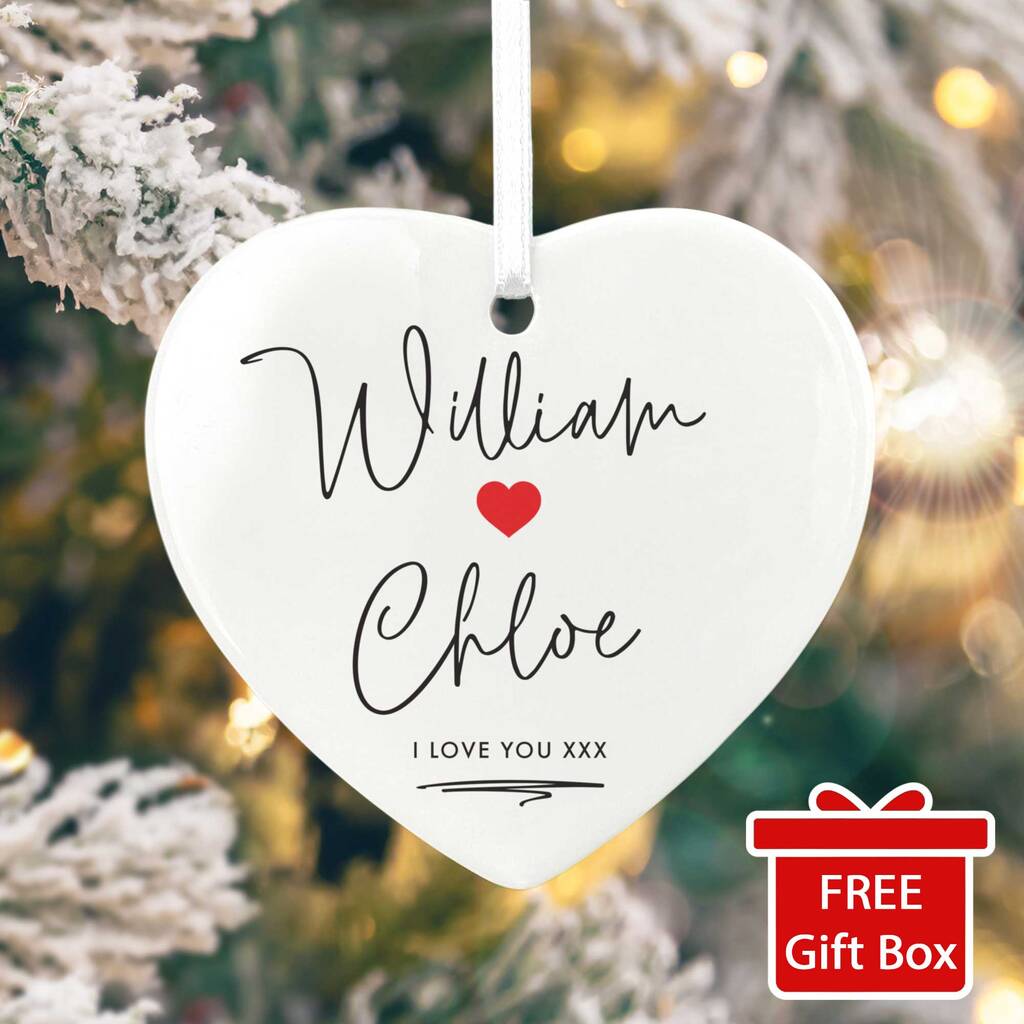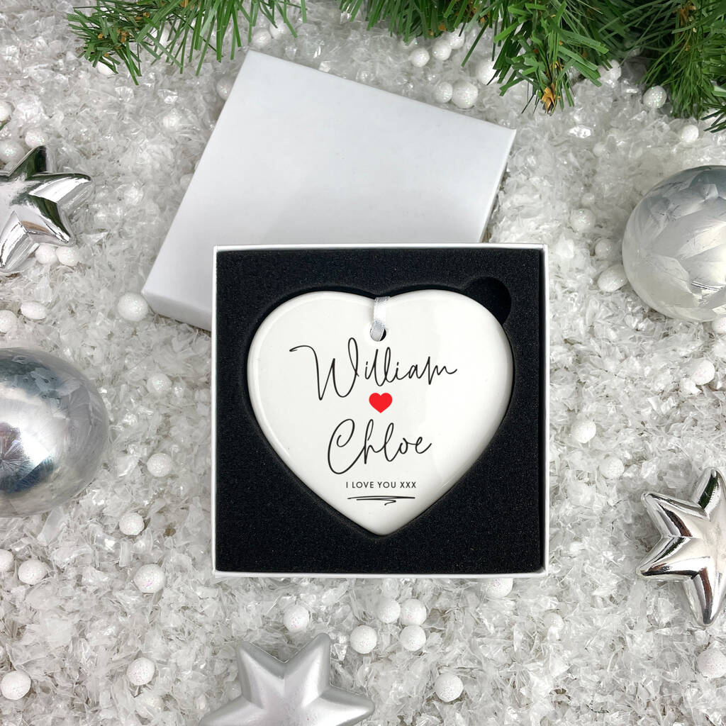 Couples Ceramic Heart Hanging Decoration Bauble + Gift Box