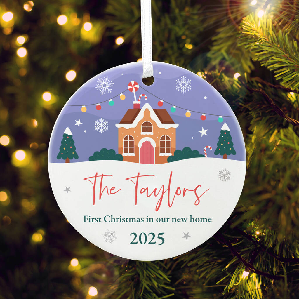 First Christmas New Home Ceramic Disc Hanging Decoration Bauble + Gift Box