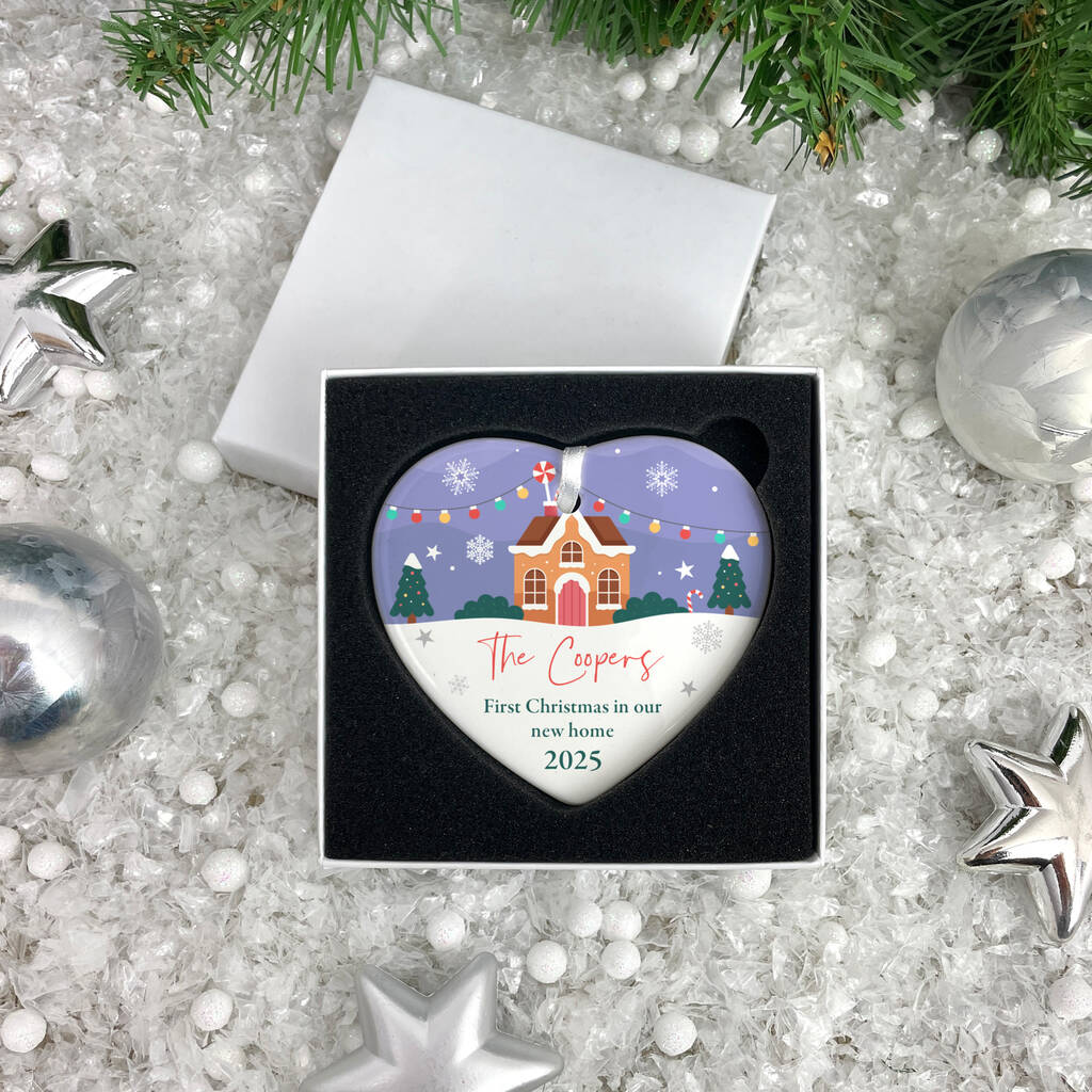 First Christmas New Home Ceramic Heart Hanging Decoration Bauble + Gift Box
