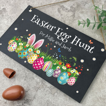 Personalised Colourful Easter Slate Hanging Sign 25 X 15cm