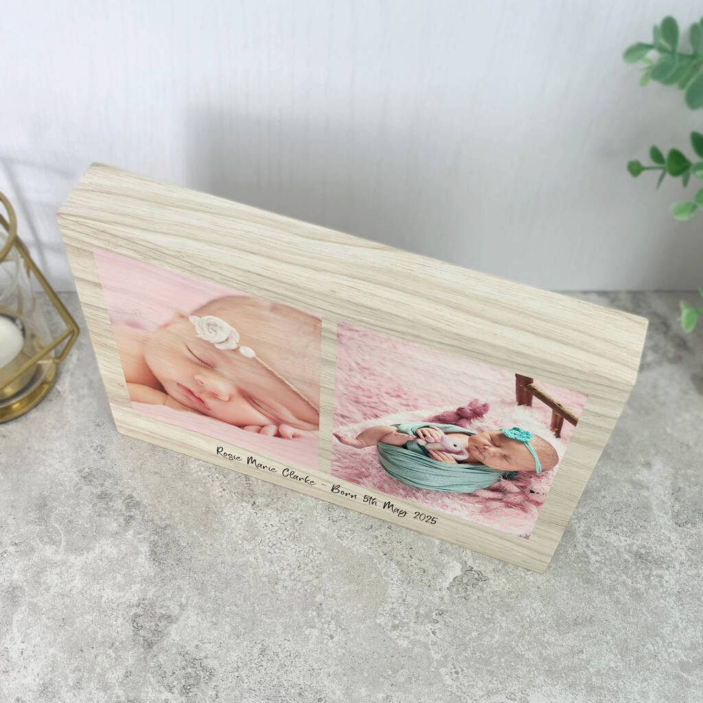 Personalised Freestanding Two Photo Giant Wooden Block 15cm X 21cm Landscape