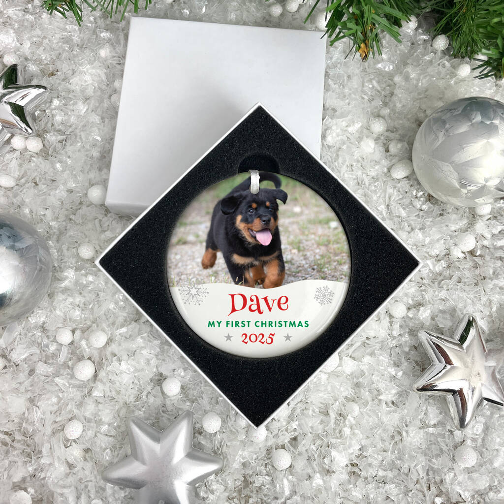 Pet Photo Ceramic Disc Hanging Decoration Bauble + Gift Box