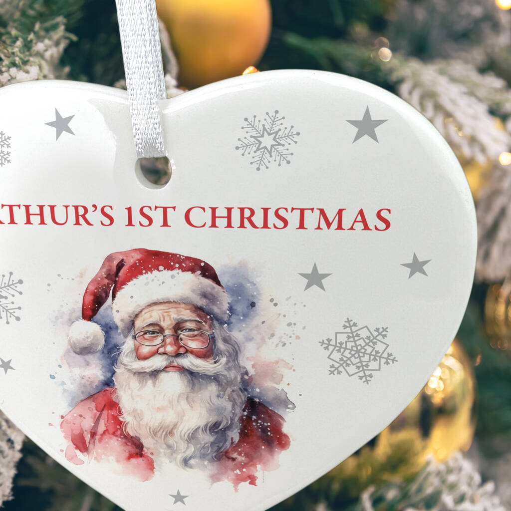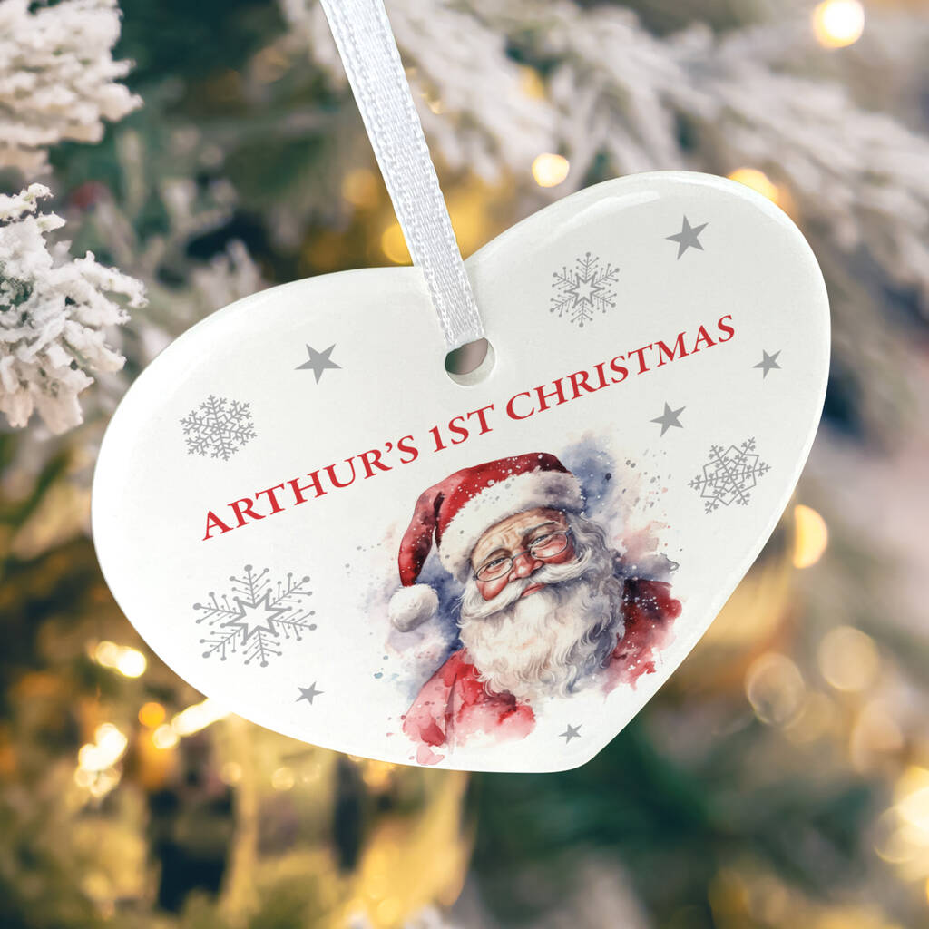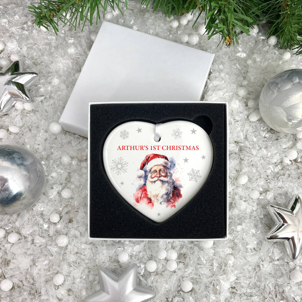 Traditional Santa Any Message Ceramic Heart Hanging Decoration Bauble + Gift Box
