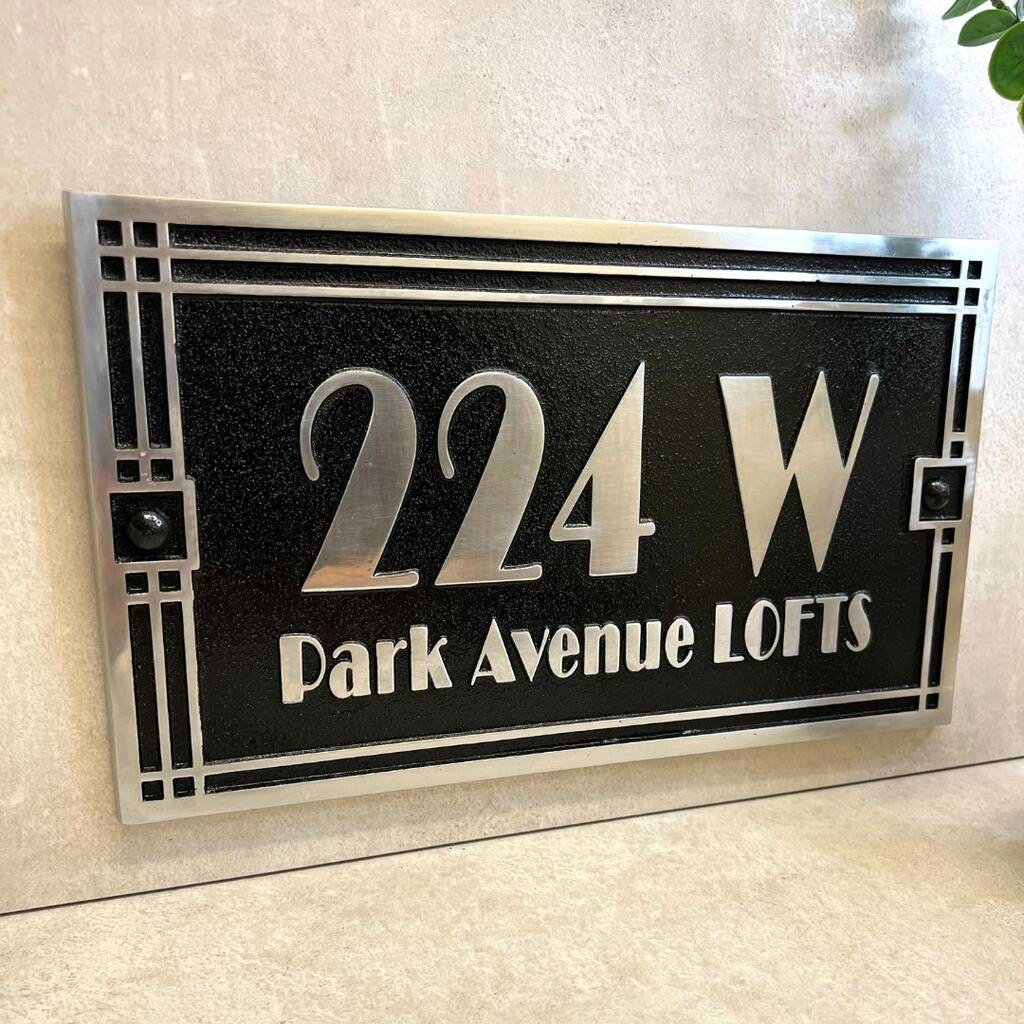 Personalised Linear Art Deco With Street Name House Address Bespoke Plaque