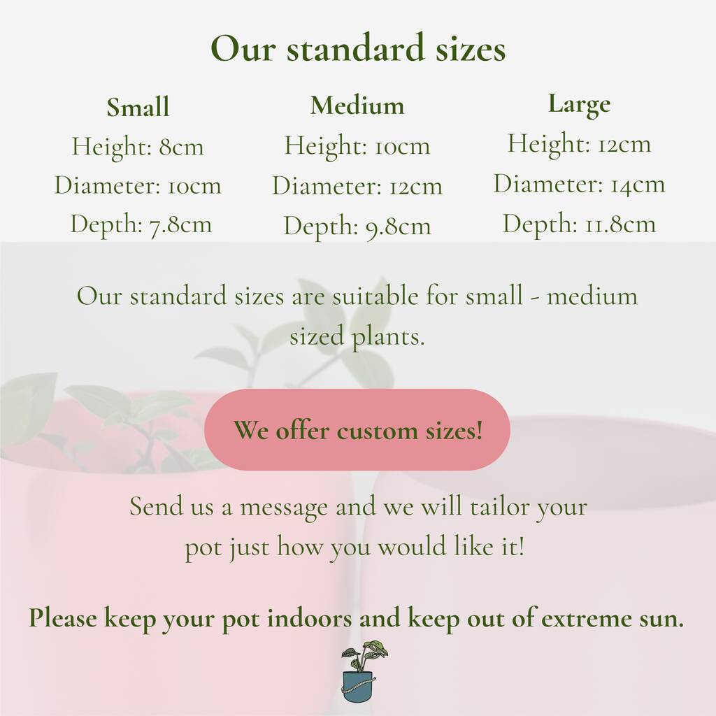 Our products are always designed by us giving you the assurance that they are individual to our brand and can’t be found anywhere else. Our pots would make the perfect gift for someone who loves house plants or home decor! They are designed to be lightweight and robust, making them a great alternative to ceramic pots, which are often heavy and fragile.