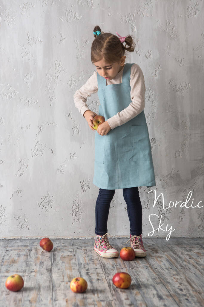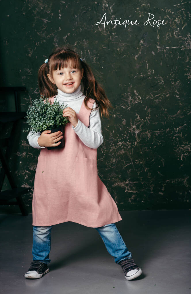Our children’s pinafore aprons are available in a beautiful selection of natural and earthy linen tones to suit every little personality and space. Each apron is handmade from top-quality 100% pure European linen and comfortable everyday wear.