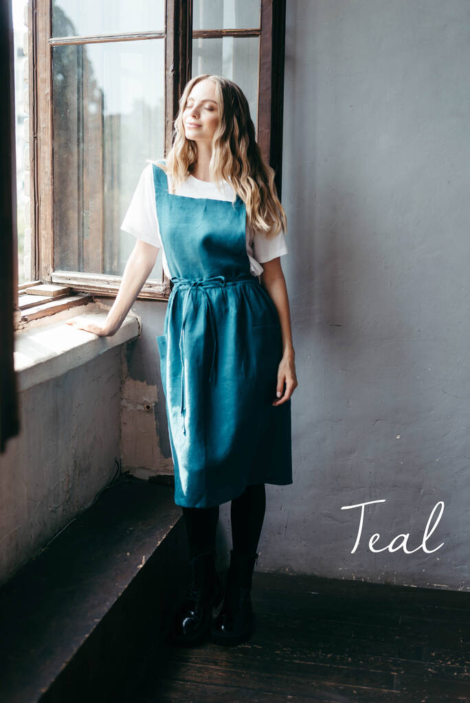 This linen dress apron is designed for makers who value comfort, movement and beautiful materials. Cut in a relaxed crossback style, it slips on easily without ties and offers full, practical coverage for studio work, crafting, gardening or everyday tasks at home.