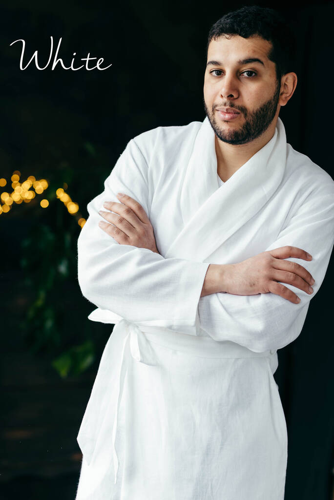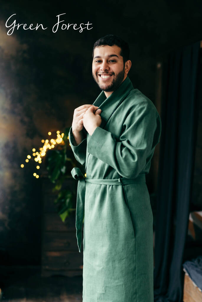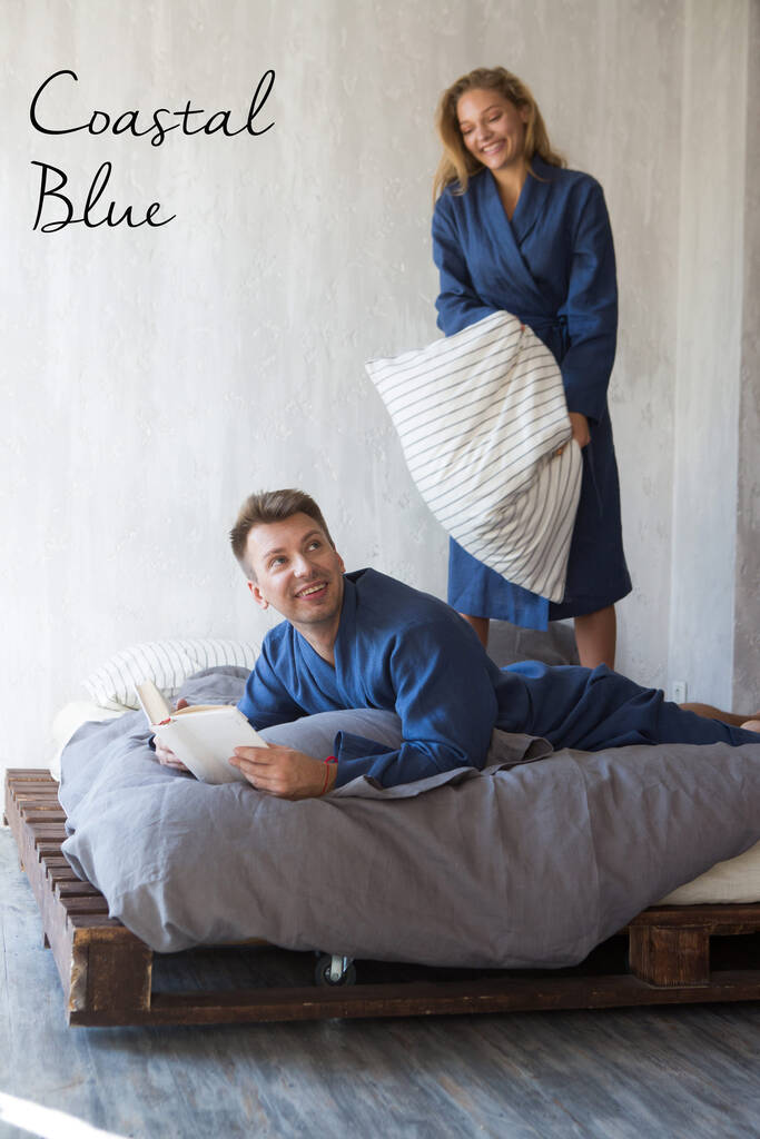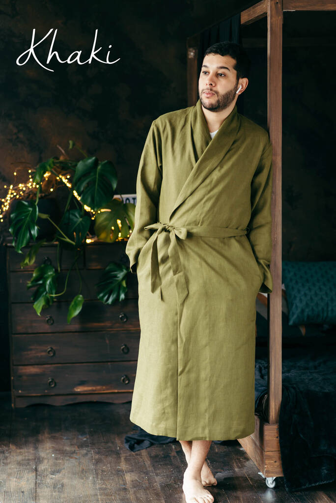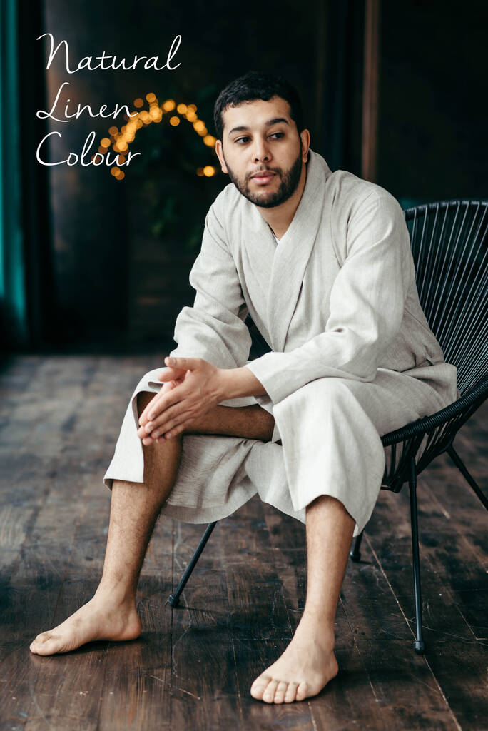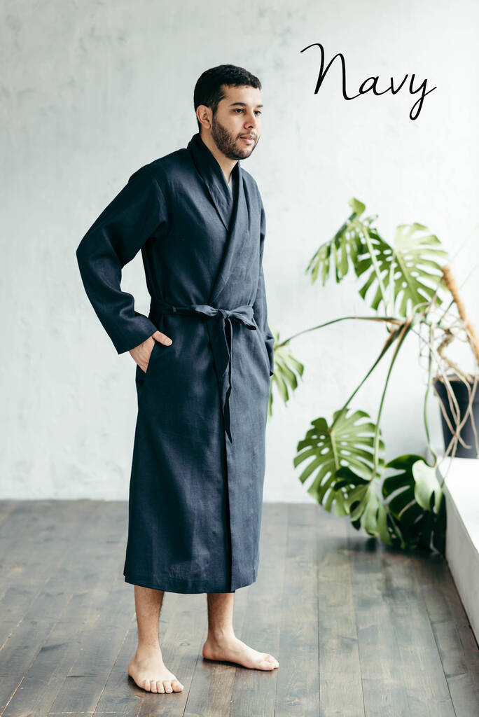 Navy Linen Robe For Men