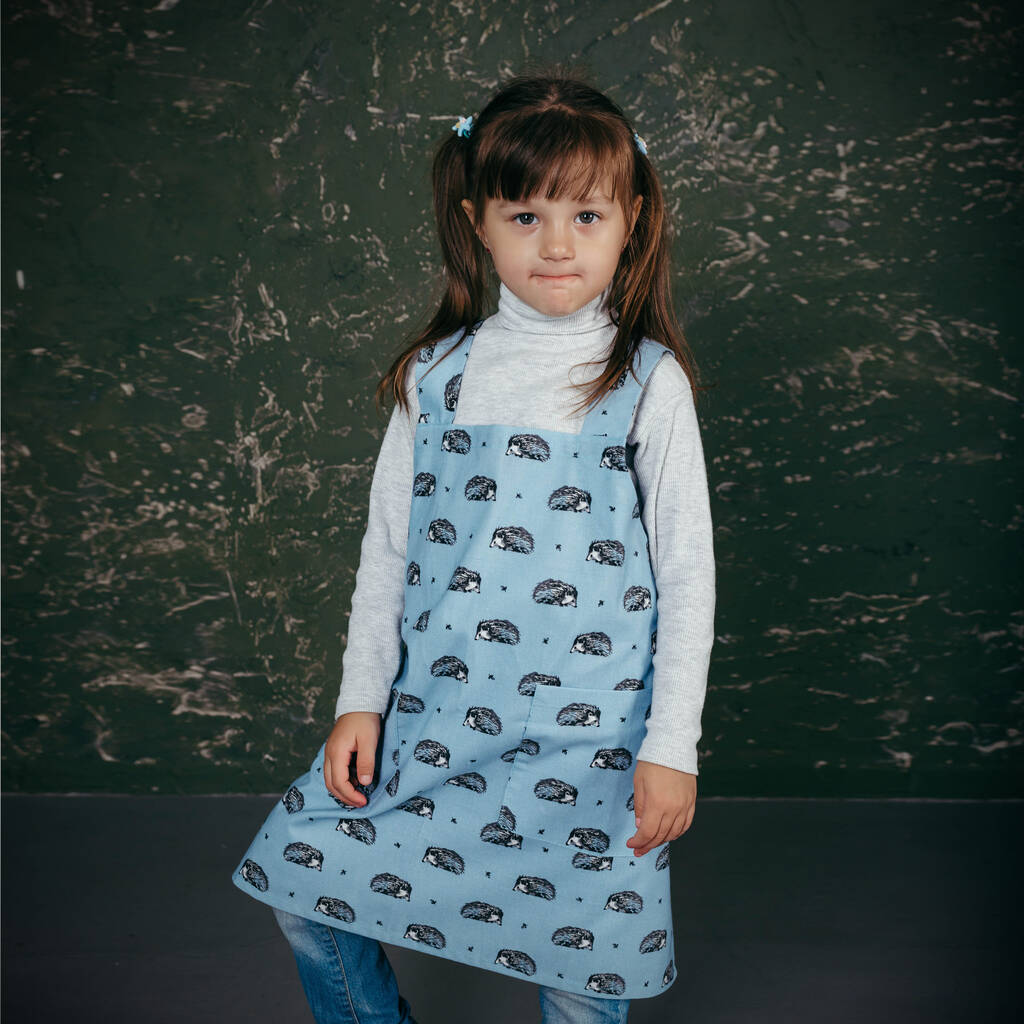 Our crossover aprons are available in a curated selection of unisex printed designs including woodland animals, geometric motifs, hedgehogs, hares, foxes and soft pastel patterns. Each apron is handmade from premium cotton or cotton-linen blends, chosen for comfort and durability during baking sessions, kitchen tasks, crafting and toddler independence activities.