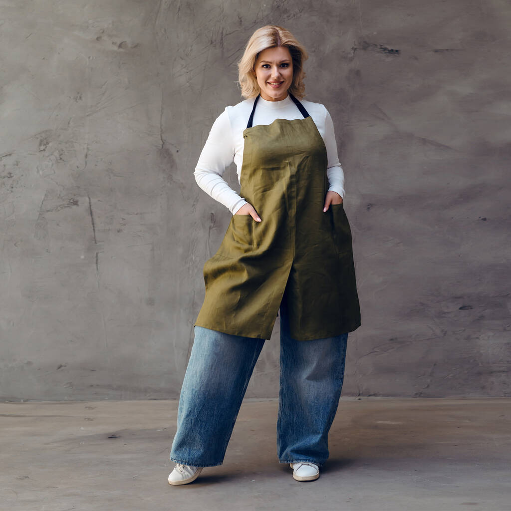 Handcrafted linen split-leg pottery apron for ceramists, artists and makers. Adjustable fit, durable design and deep pockets. Optional name embroidery for a personalised creative gift