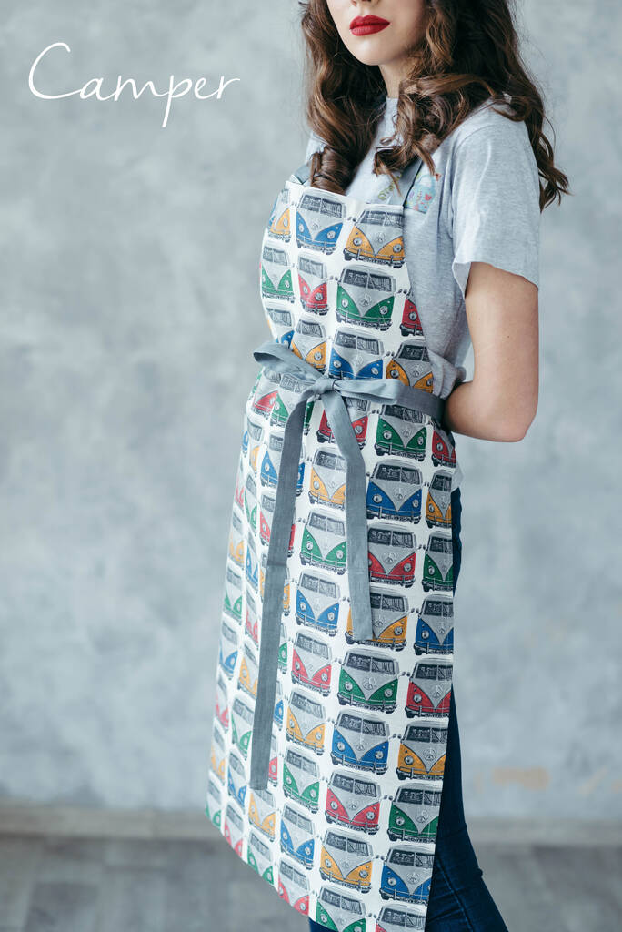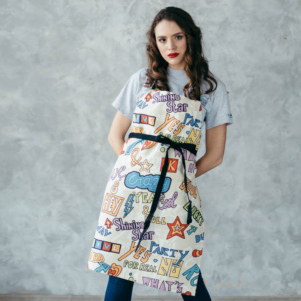 This unisex canvas apron is made from a durable cotton-rich fabric with a contemporary print and contrasting linen strap. The slide-adjustable neck makes it easy to fit men and women comfortably, while the long length offers great coverage for cooking, baking, crafting or barbecue use.