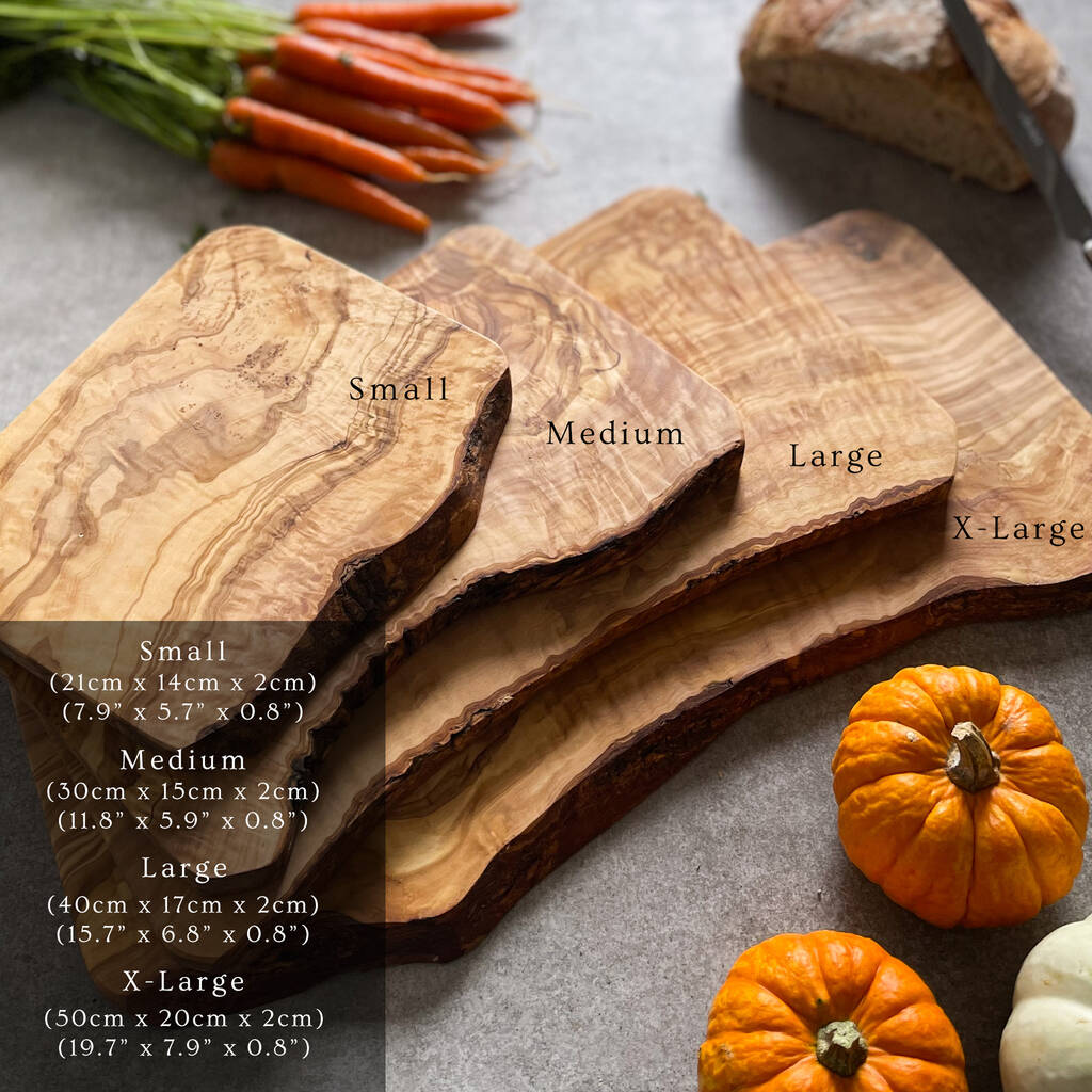 This beautifully engraved and unique personalised artisan board is ideal for use as a chopping, cheese or serving board, made from beautiful natural olive wood. Each cheeseboard is crafted from a single piece of premium olive wood, showcasing its stunning natural grain patterns, warm hues and rustic bottom edge. This ensures that every piece is unique, just like the family, friend or partner it's meant for.