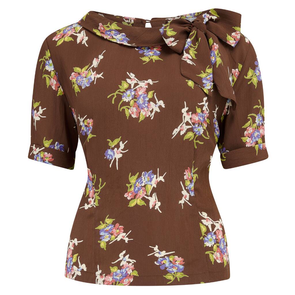 Cindy Blouse Brown Floral Vintage 1940s Style
