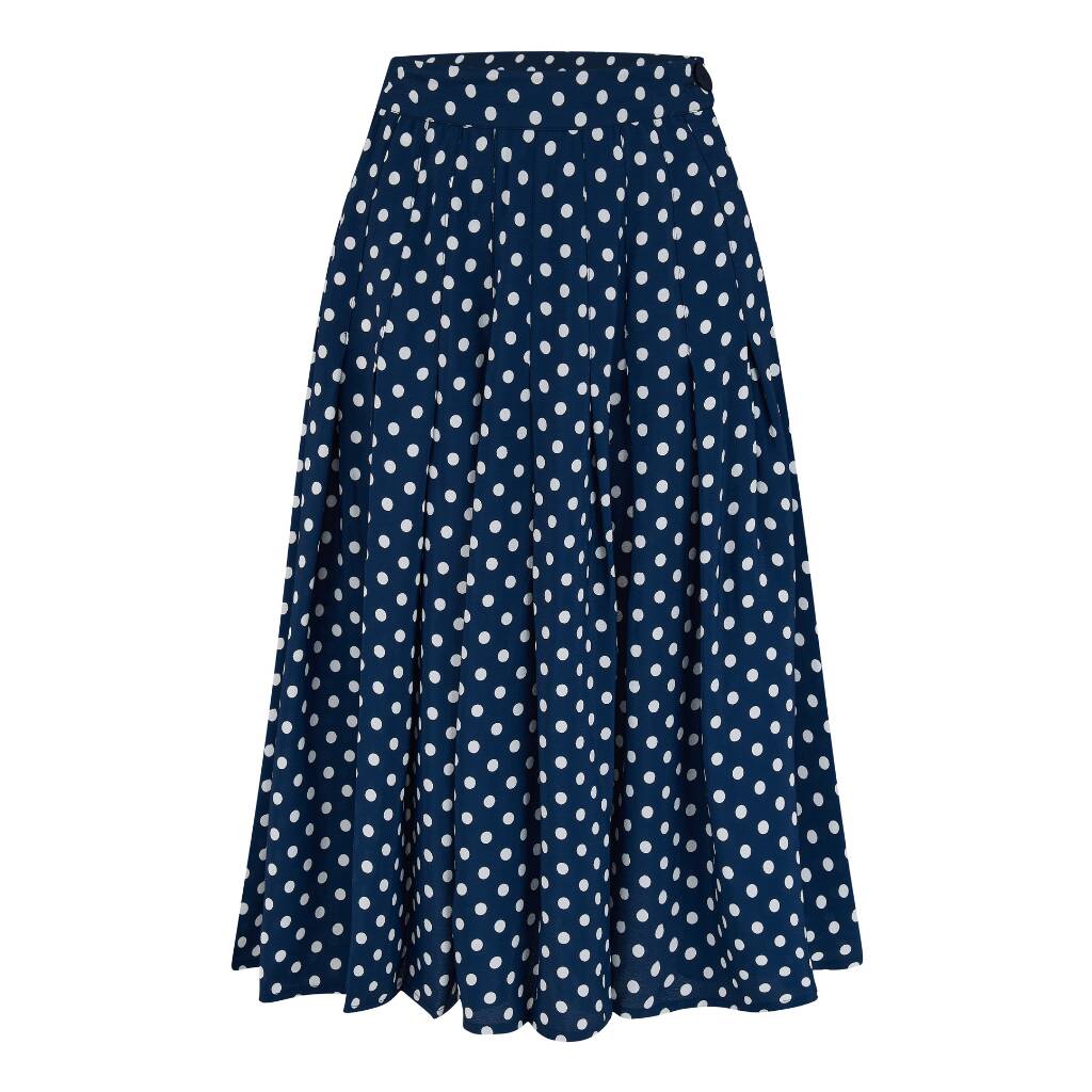 Lucille Skirt In Navy Polka Vintage 1940s Style