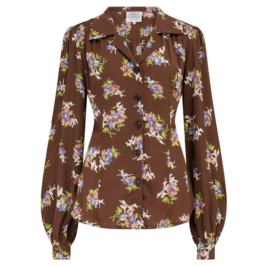 Poppy Blouse In Brown Floral Vintage 1940s Style