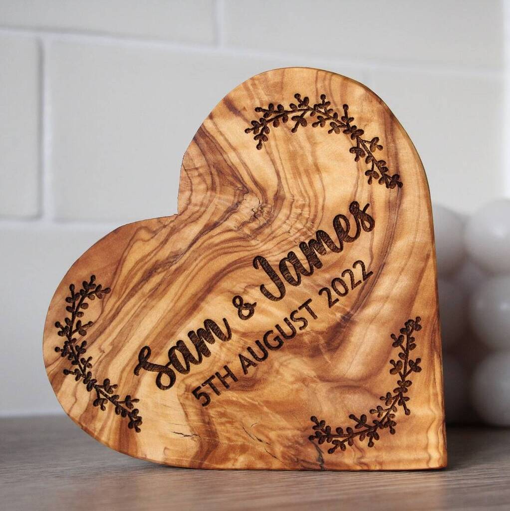 Personalised Engraved Olive Wood Heart – Custom Keepsake Gift For Couples, Housewarming And Special Occasions