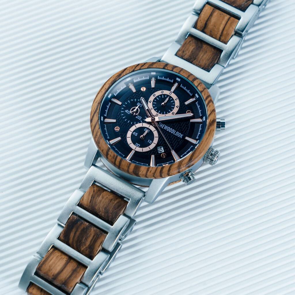 Personalised Metal And Wood Watch Mens Gift,Engraved Watch
