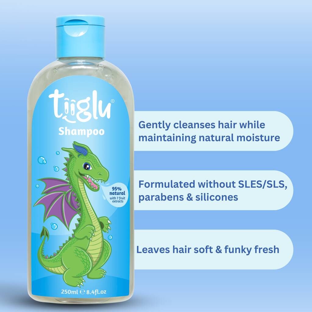 Make hair washing as exhilarating as soaring through the skies. Our fruity bubblegum Dragon Shampoo will transport little adventurers to a world of funky freshness. This gentle formula, infused with seven luscious fruit extracts, gently cleanses delicate hair, leaving it soft and smelling delicious.