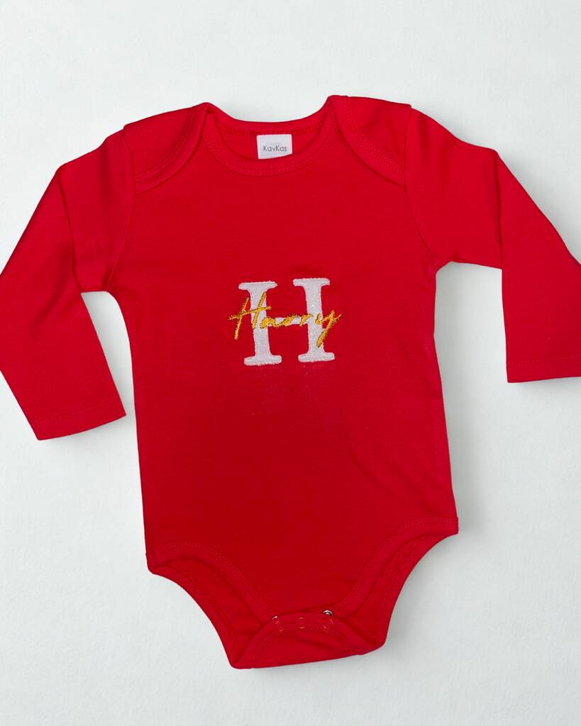 Personalised Embroidered Baby Christmas Pyjama Set With Glitter Initials