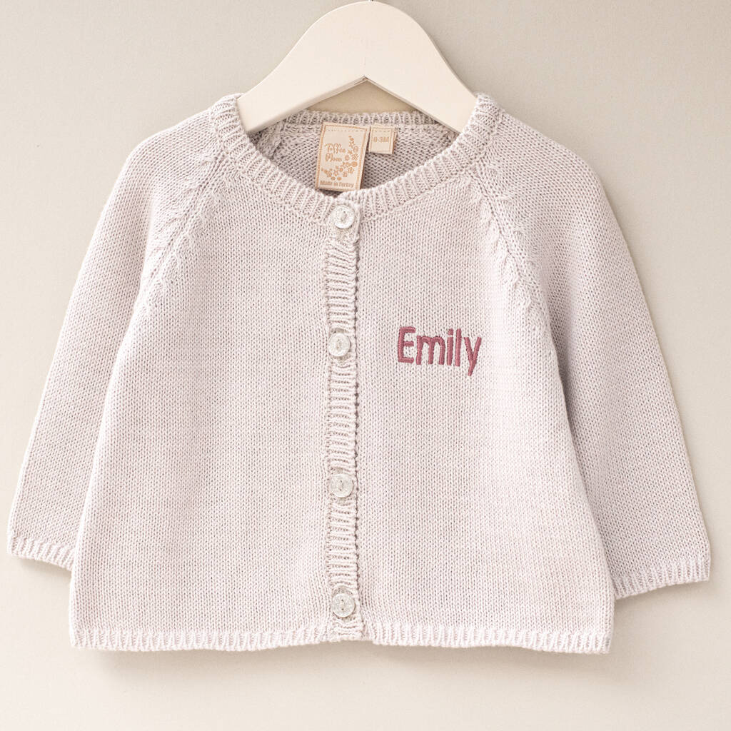 Add even more twinkle! Our little cardigans can also be personalised with simple initials in sparkley silver thread (up to 3 letters).