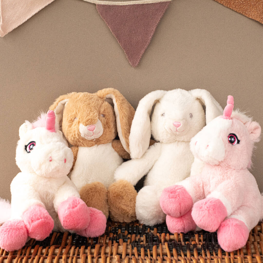 Meet our lovable Bunny Rabbits and Unicorns – thoughtfully designed to be kind to the planet and gentle for little ones. Super soft, perfectly sized for tiny hands and suitable from birth, they make the sweetest first cuddle companions. Add for £10.