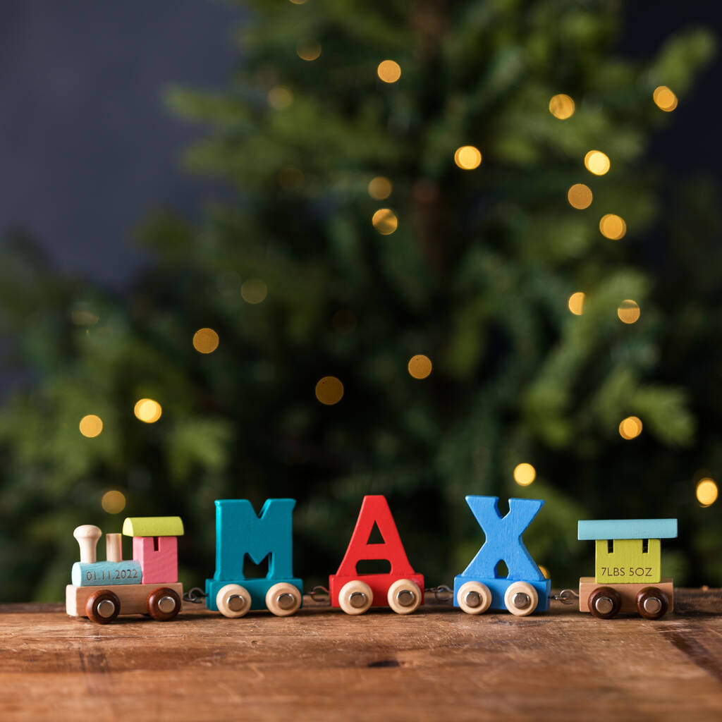 Personalised Engraved Christmas Wooden Name Train Set