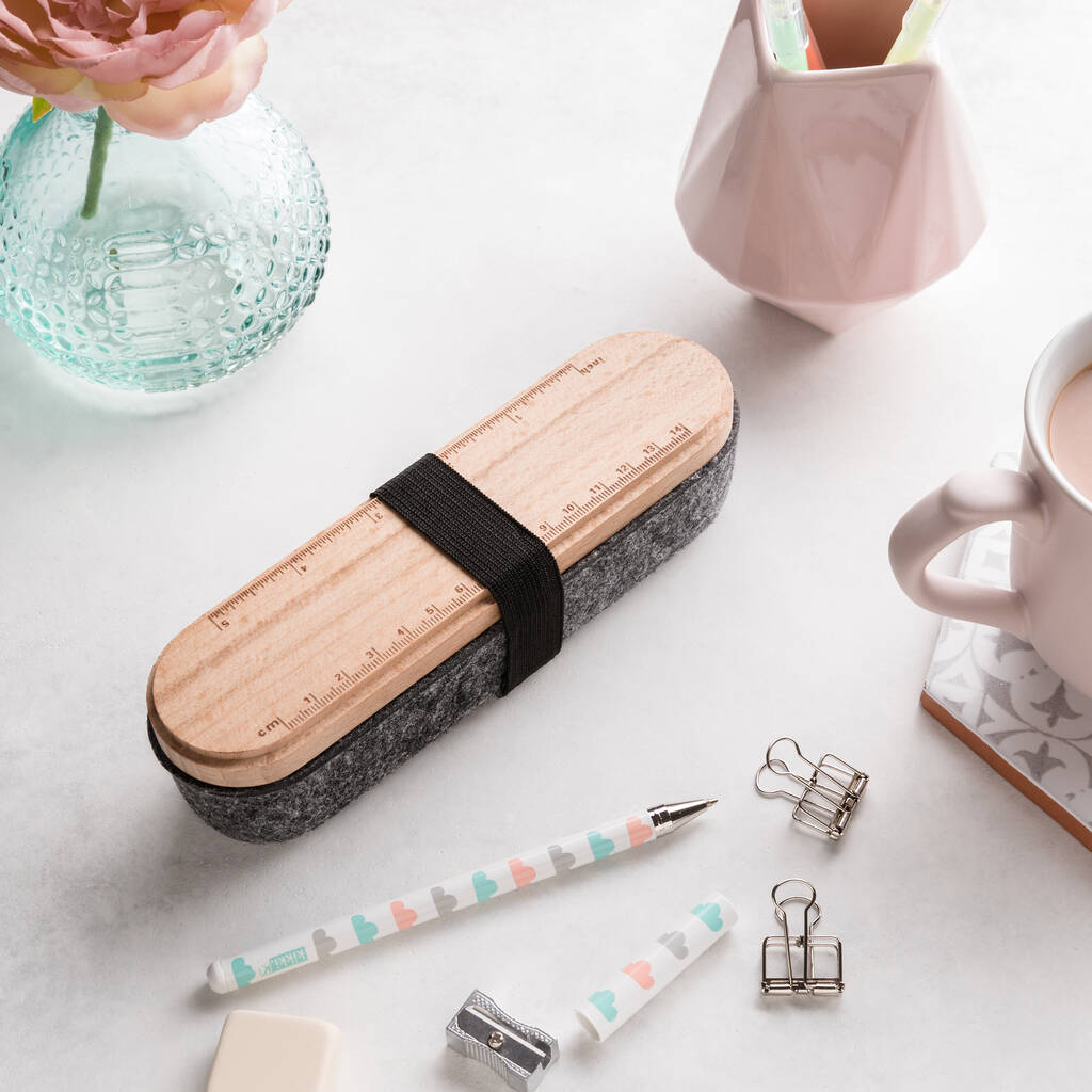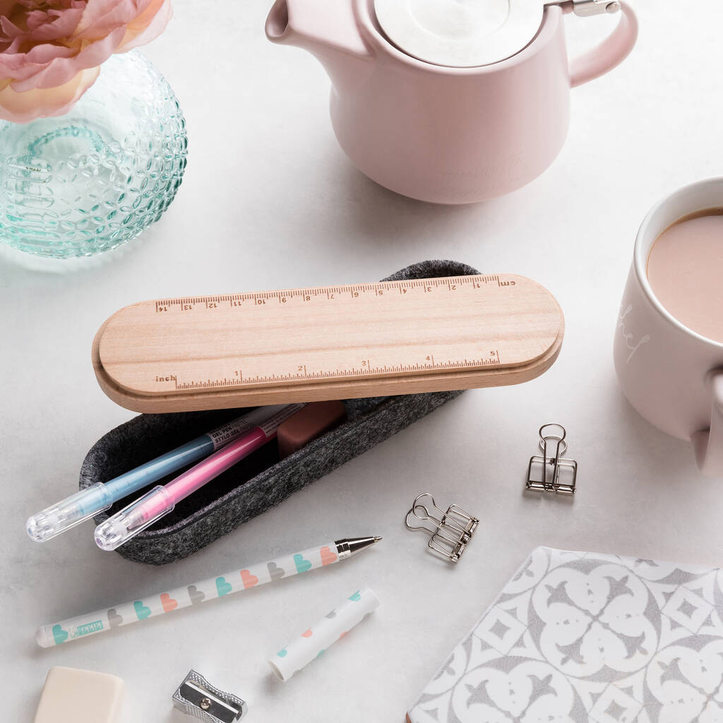 Personalised Wooden Felt Pencil Case And Phone Stand
