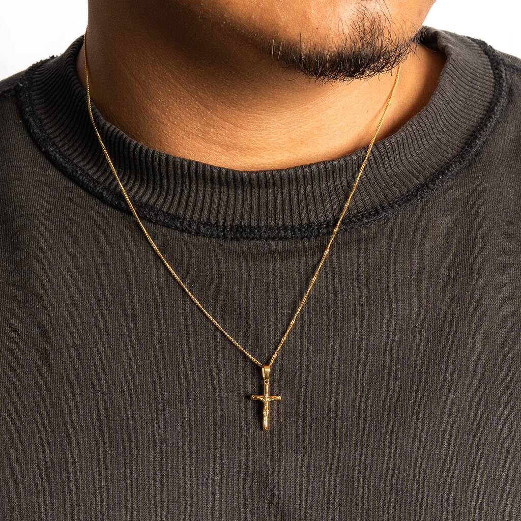 Gold Mini Crucifix Cross Pendant Chain For Men, 1 of 12
