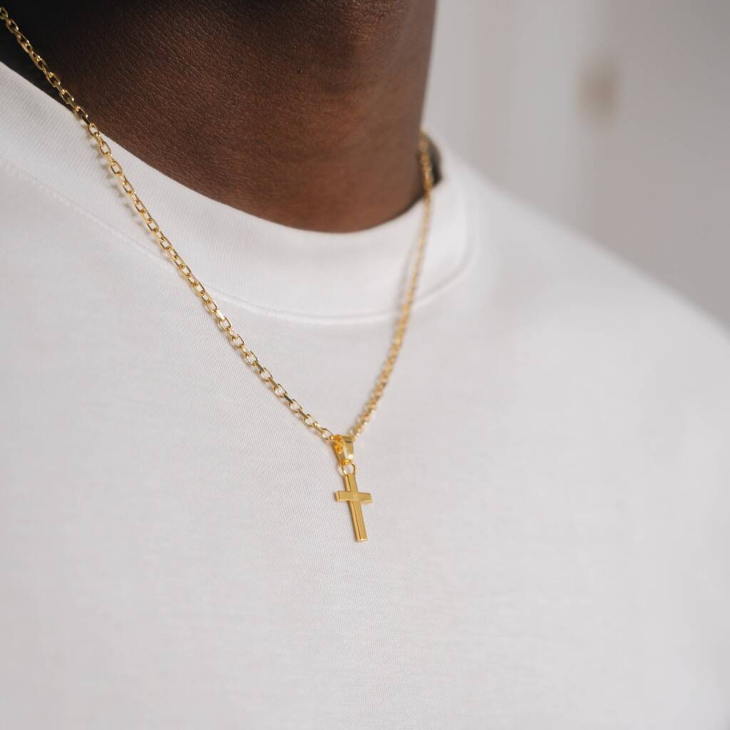 Men's 925 Sterling Silver Mini Cross X Rolo Chain Pendant Necklace Chain For Men, 1 of 12