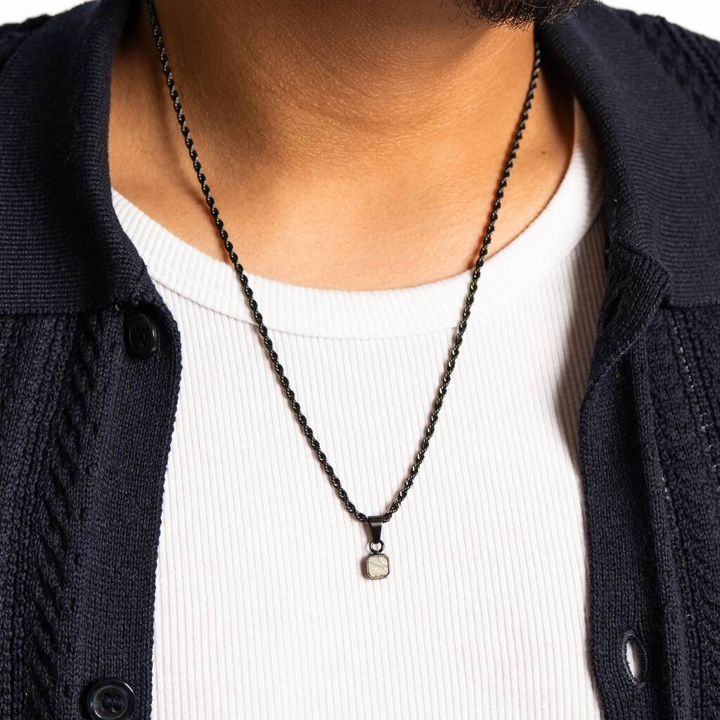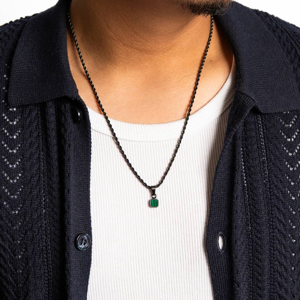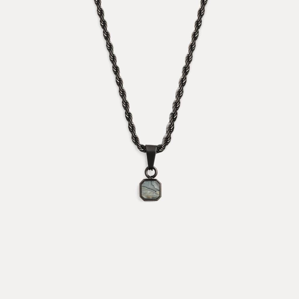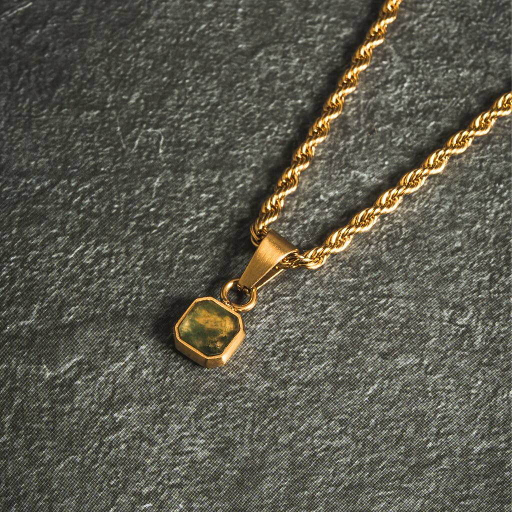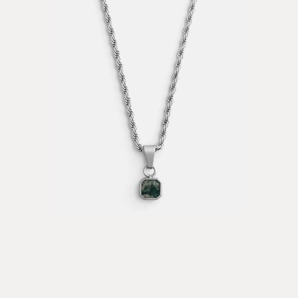 Silver Mini Moss Agate Gemstone Pendant Necklace For Men