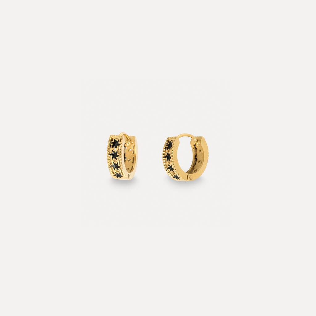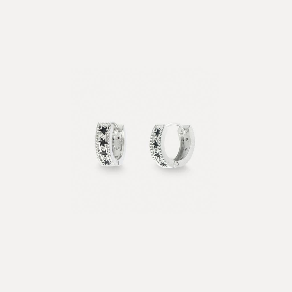 Silver Origin Black Patterned Huggie Hoop Earring For Men